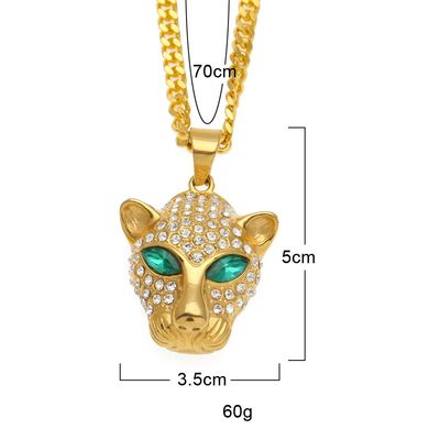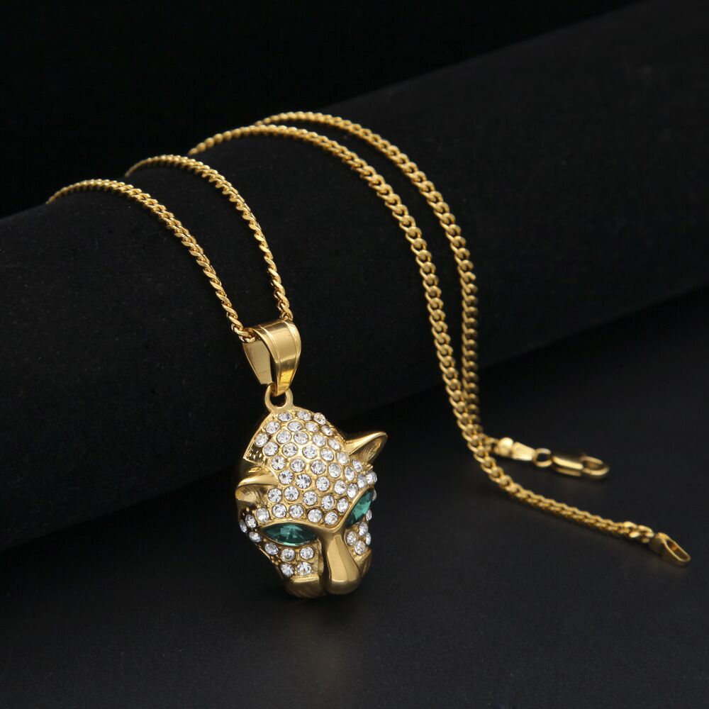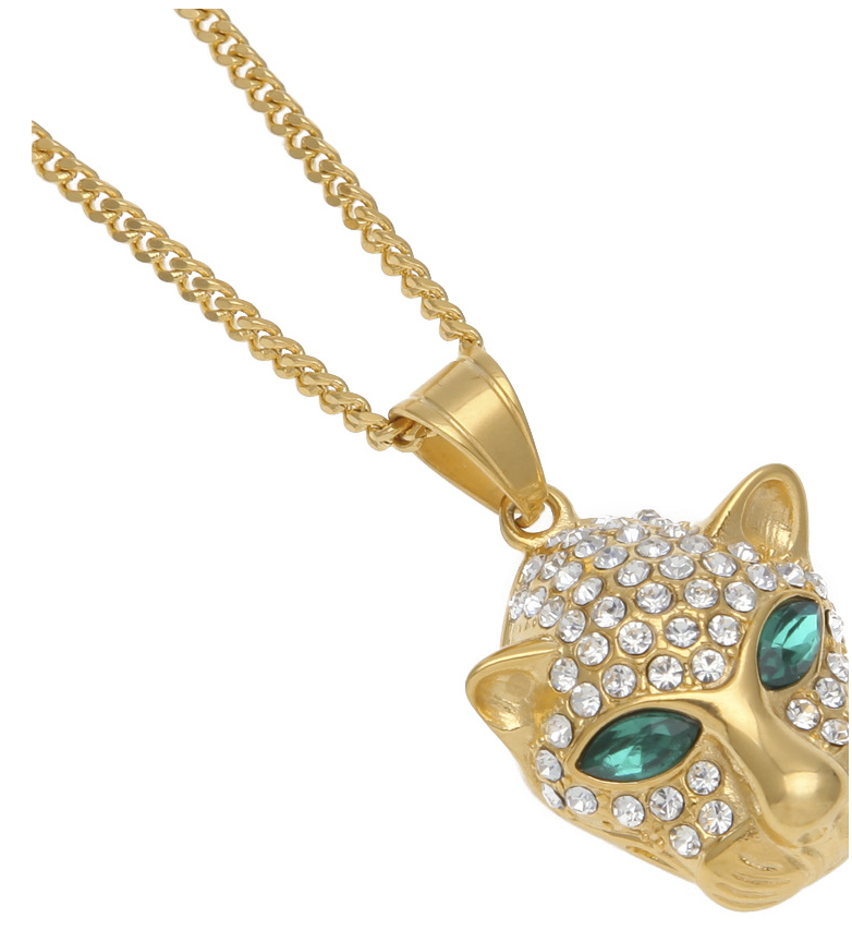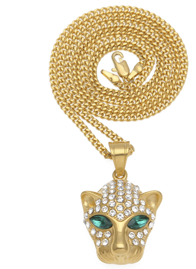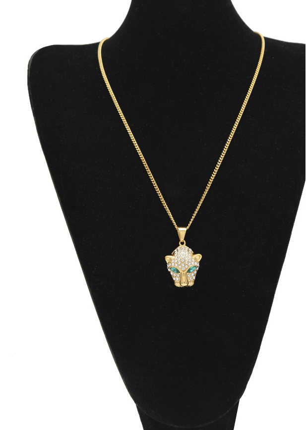 MONJAH LEOPARD HEAD HIP HOP NECKLACE WITH GEMSTONE IN GOLD
