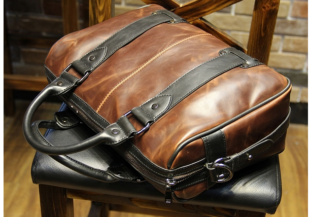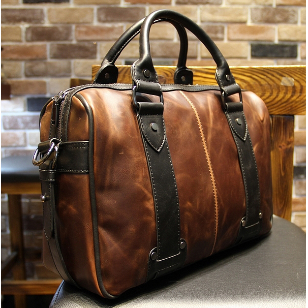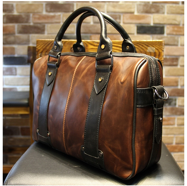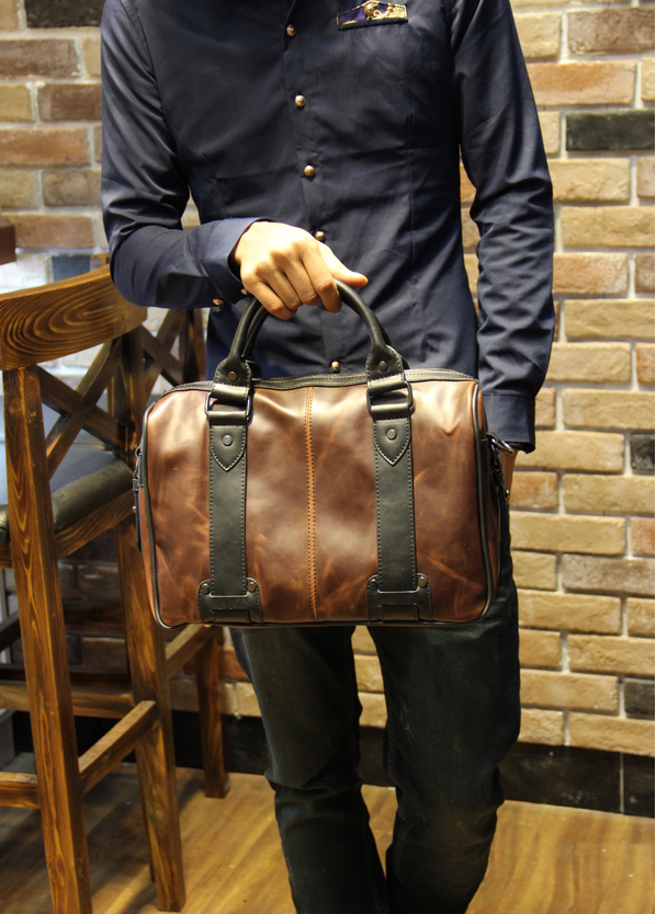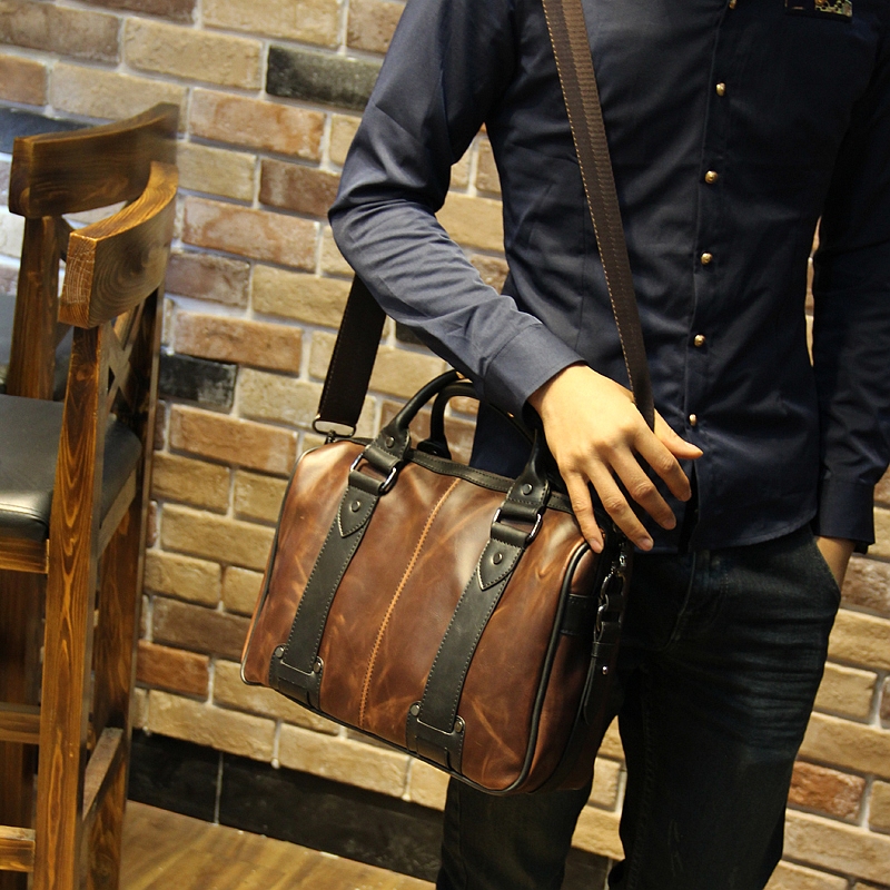 POTTE GARO LEATHER CROSSBODY BRIEFCASE HANDBAG IN BROWN