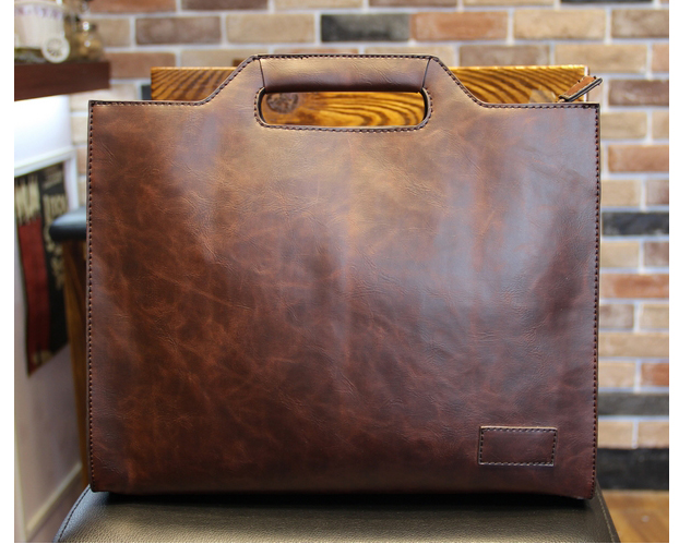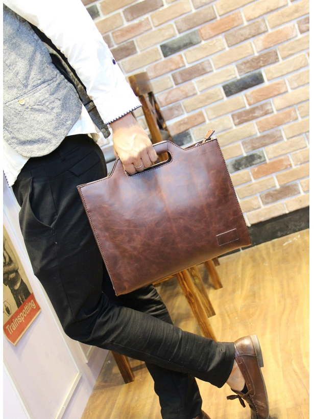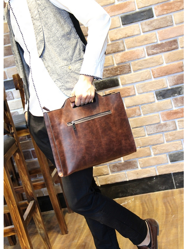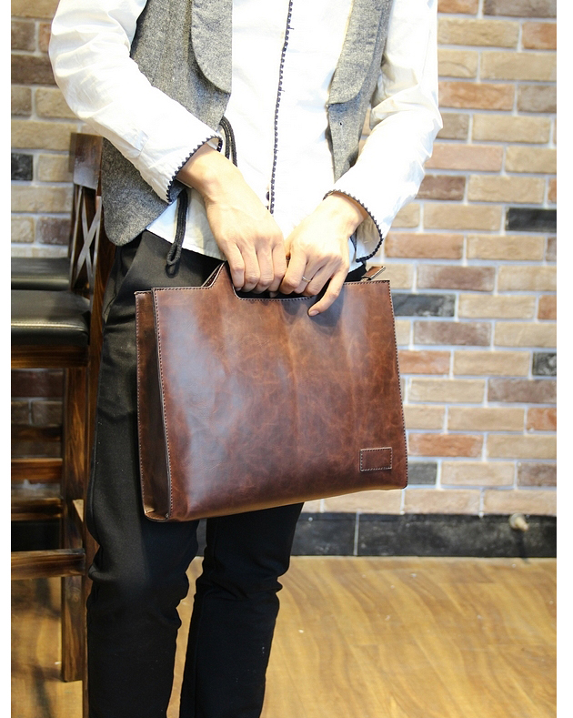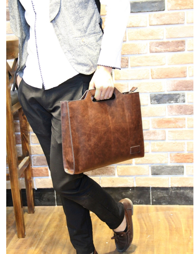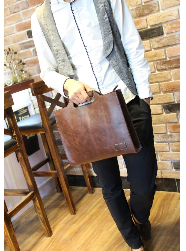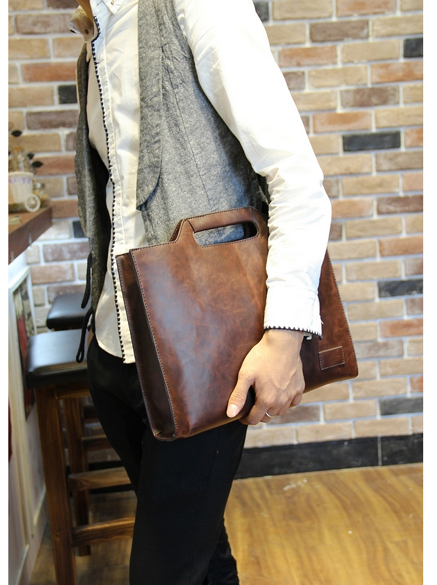 POTTE GARO DIAGONAL CASUAL LEATHER CLUTCH HANDBAG IN BROWN