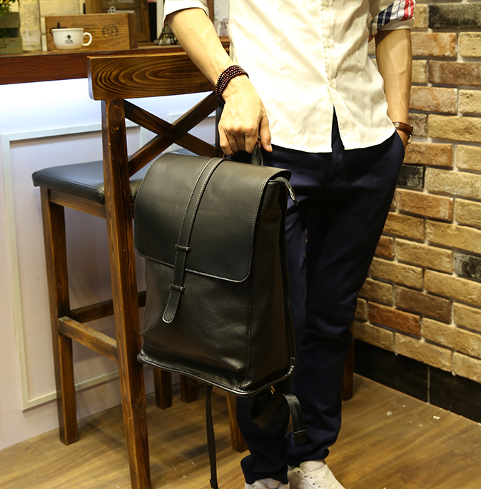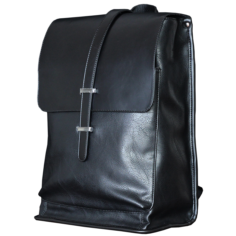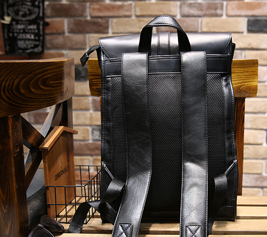 POTTE GORRA LARGE CAPACITY SCHOOLBAG LEATHER BACKPACK IN BLACK