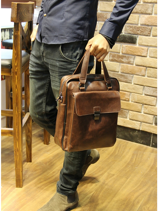 CORRA MICZO BRIEFCASE LEATHER HANDBAGS IN BROWN