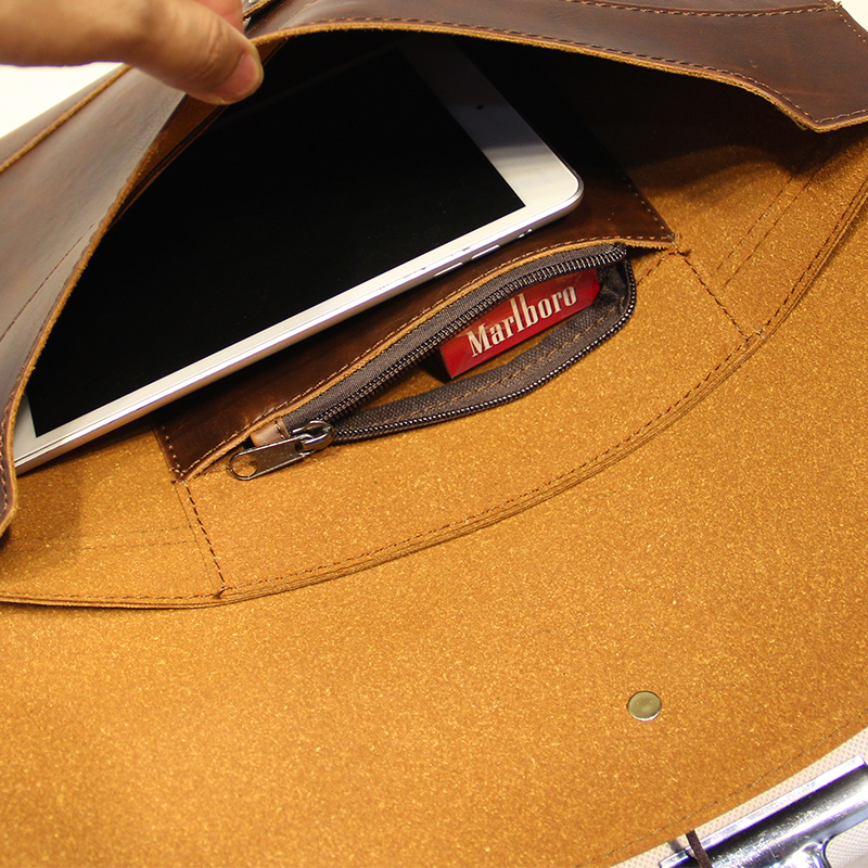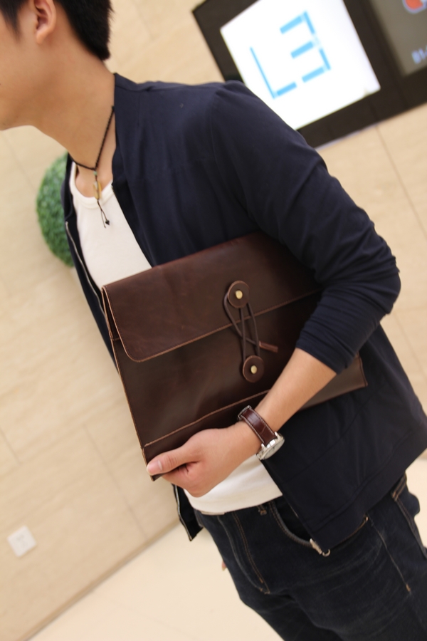 PUTTICO AREZ LEATHER BRIEFCASE HANDBAG IN BROWN