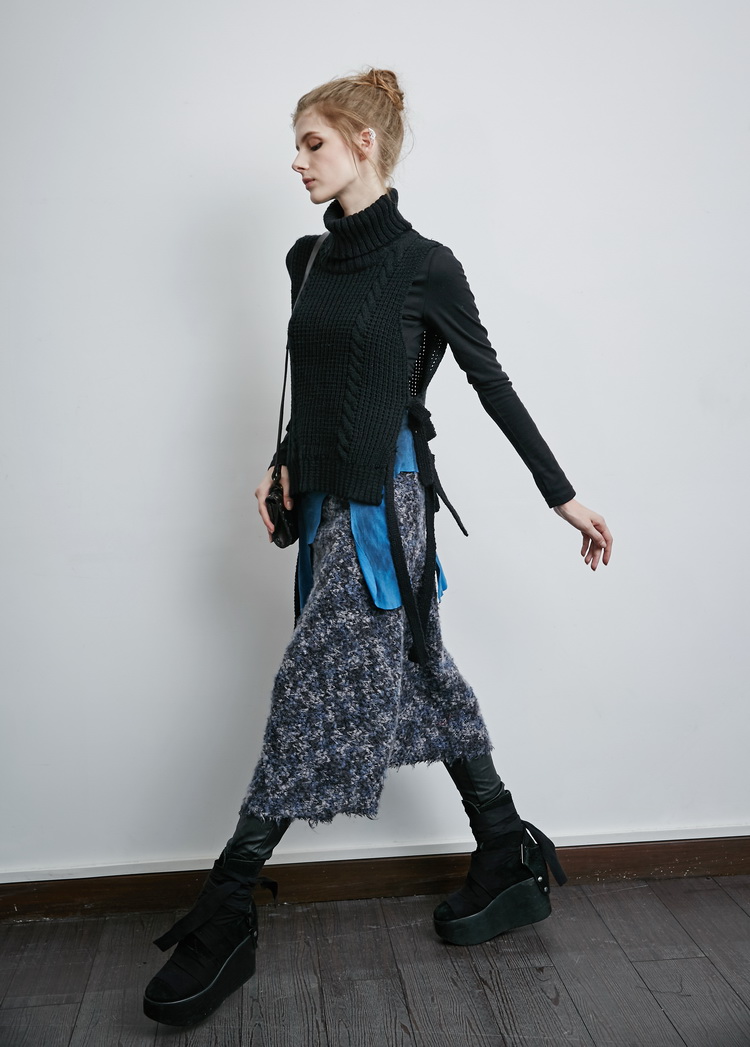 PUNK RAVE FABRIC STITCHED LONG SKIRT PQ-080