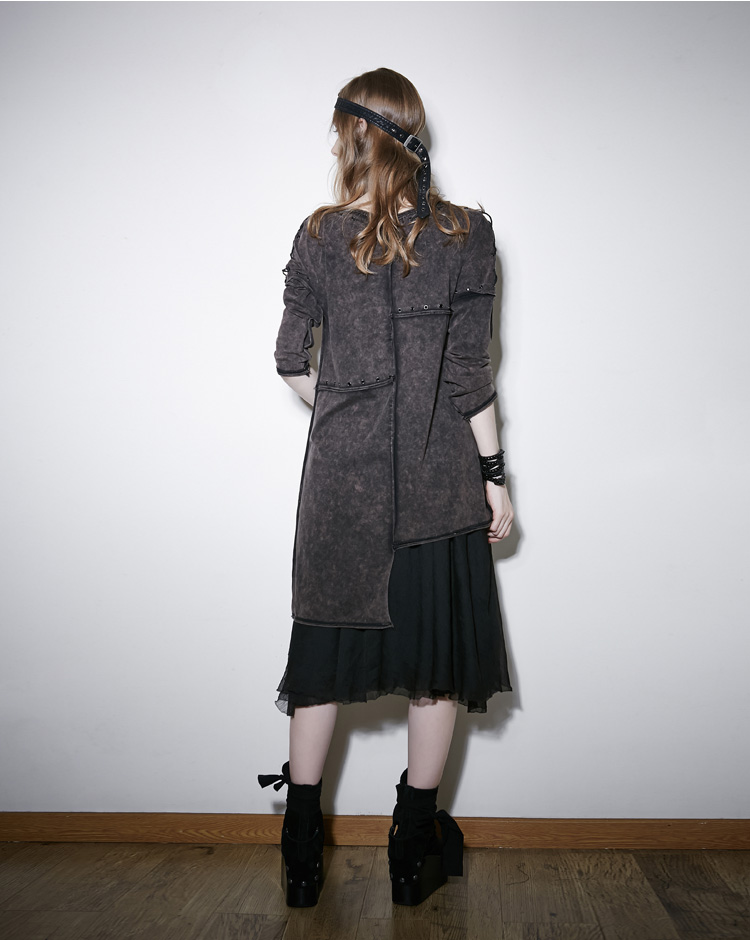 PUNK RAVE GREY BLACK PUNK LOOSE SWEATSHIRT PT-067