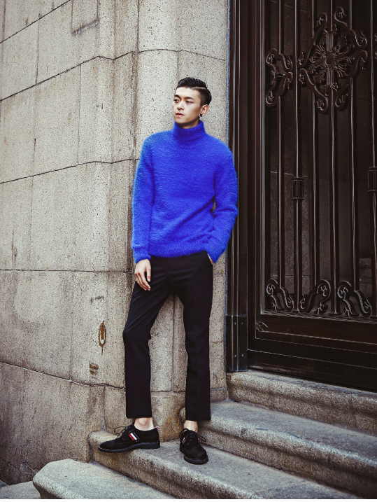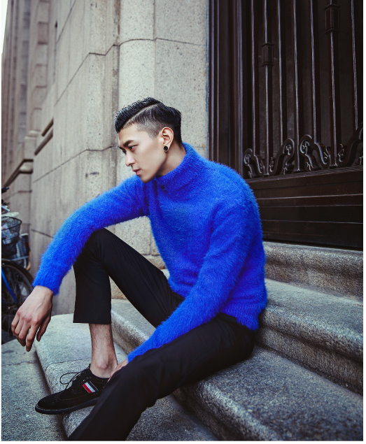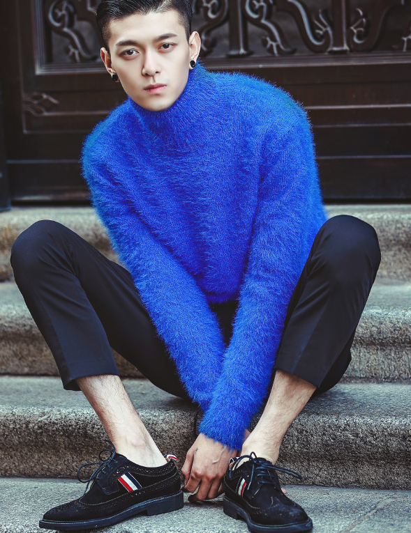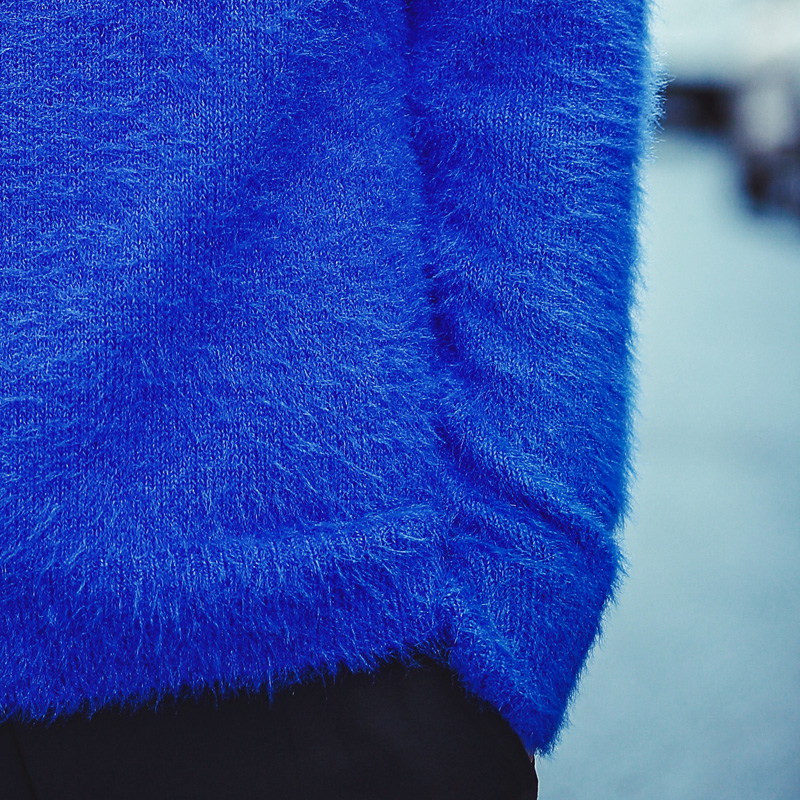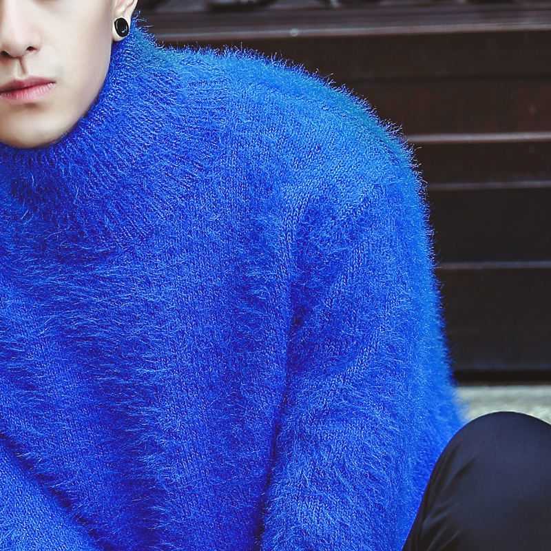JAPANESE FASHION WEEK HIGH-NECKED PURE BLUE WOOLEN SWEATER