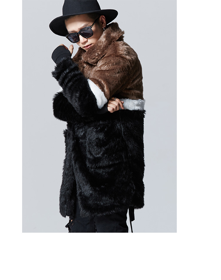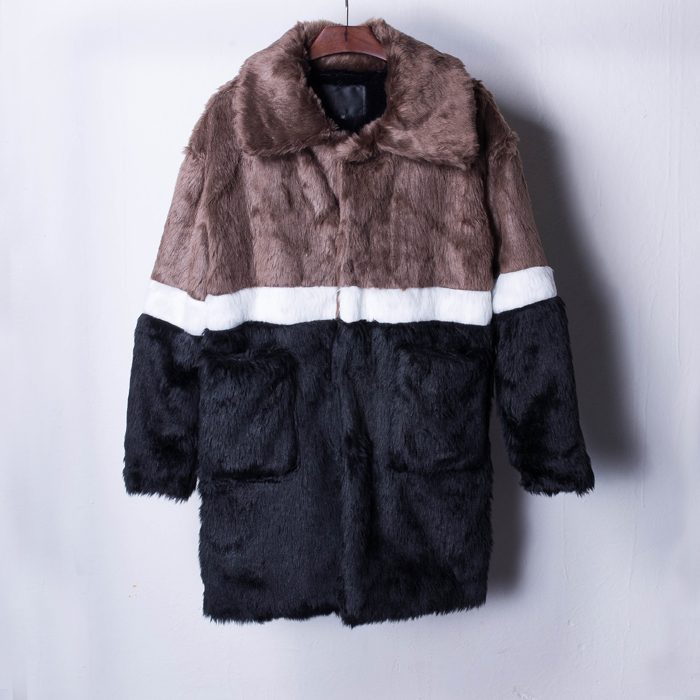 SLIVIIA BRITISH STREET DESIGN RAYON FUR BROWN BLACK WHITE STRIPED LONG COAT