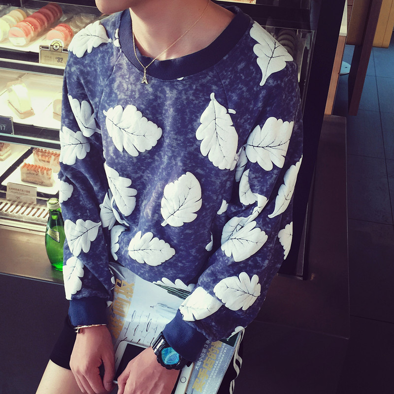 NAVY BLUE JAPANESE FASHION LEAVES PRINTED SWEATSHIRT