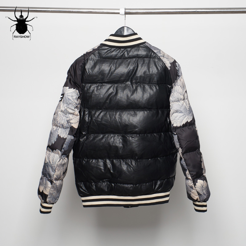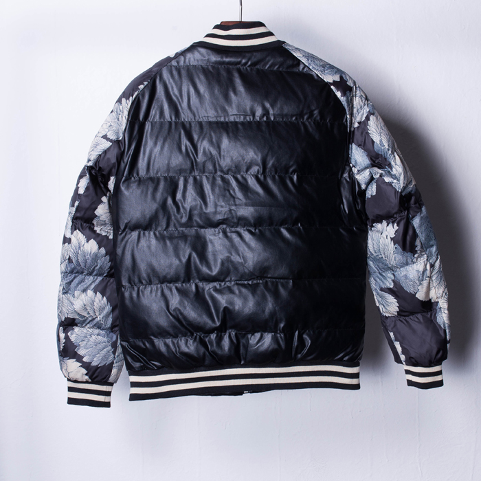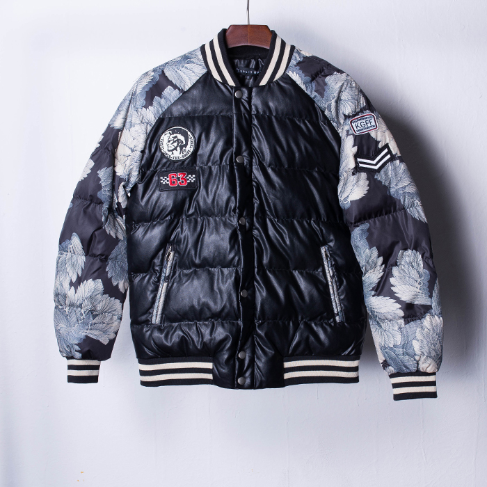 SPLIT OF INSIGNIA COLLAR THICK WINTERIZED SYNTHETIC LEATHER BASEBALL JACKET