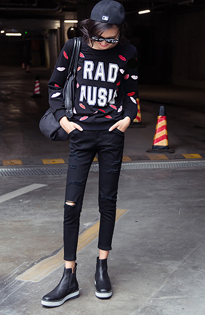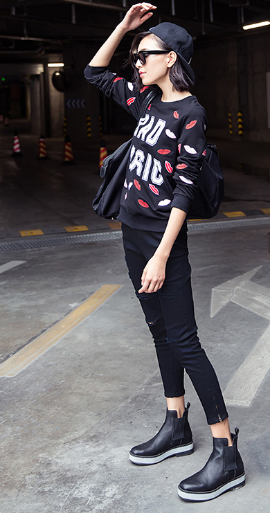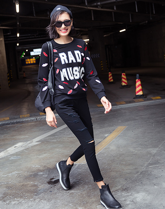 OTHERMIX BLACK WITH RED SEXY LIPS FIGURED SWEATSHIRT 5ML3964Y