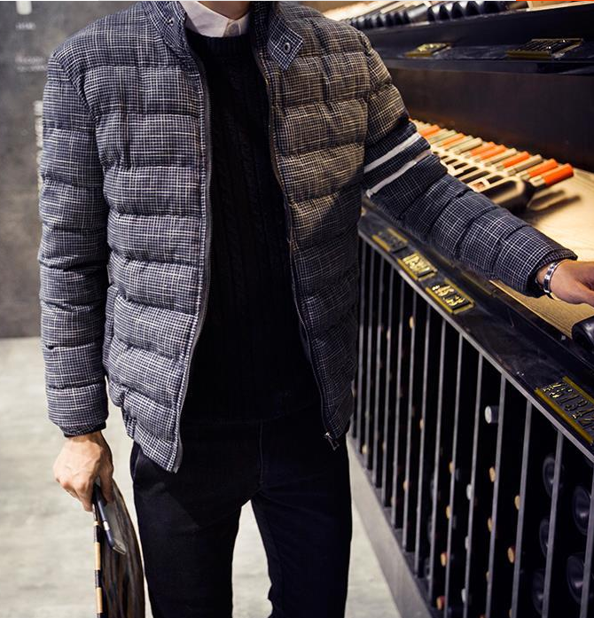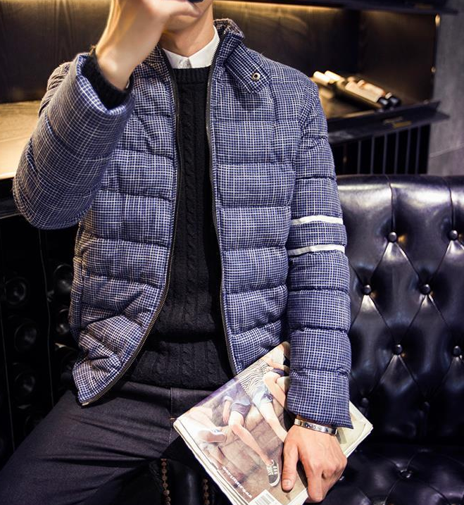 DARK BLUE KOREAN STYLE RIBBED WORK WARM COTTON COAT