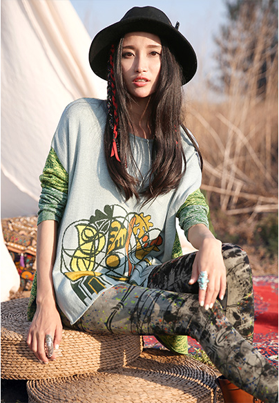 MONGOLIAN RETRO STYLE ABSTRACT PATTERN LOOSE SWEATER 51151288