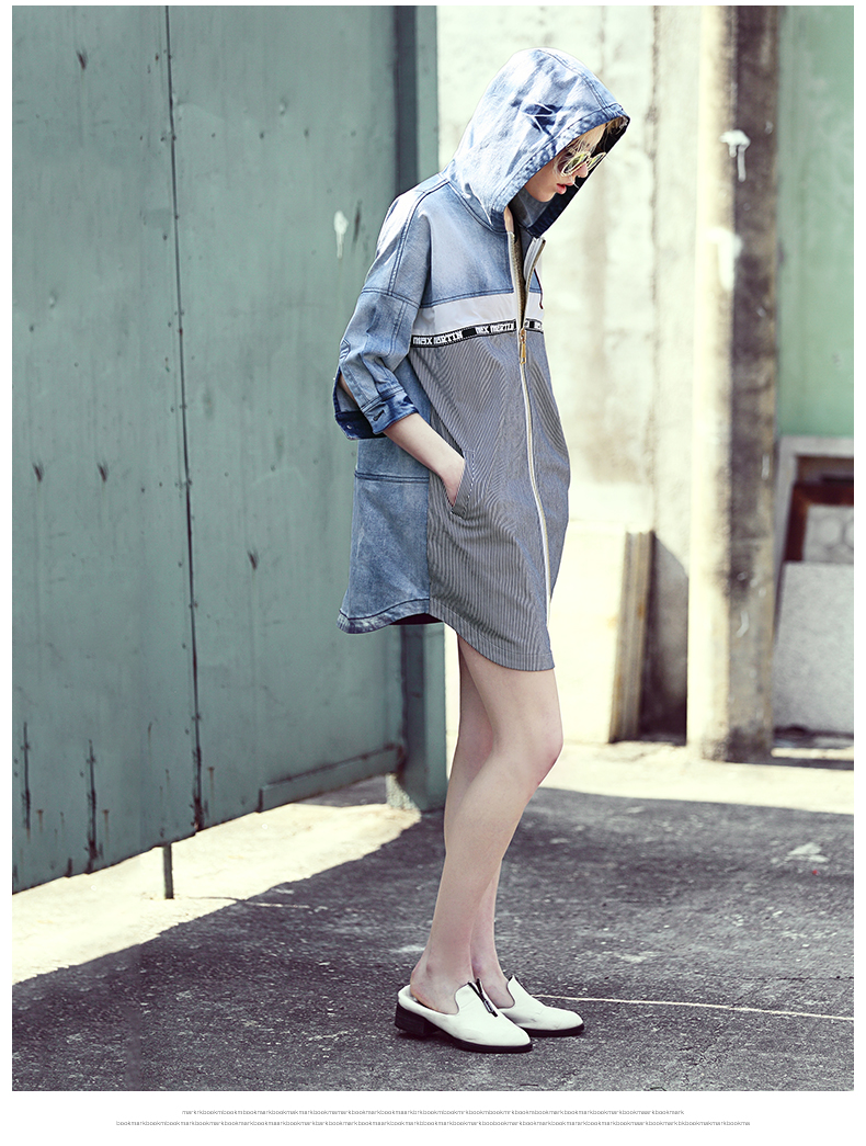 MAXMARTIN HOODED DENIM FABRIC STITCHED COAT DRESS M201351J2