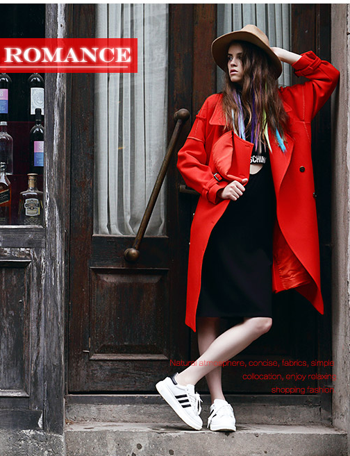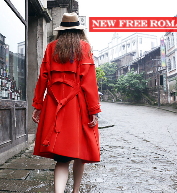 RED DOUBLE BREASTED LAPEL LONG WINTER COAT
