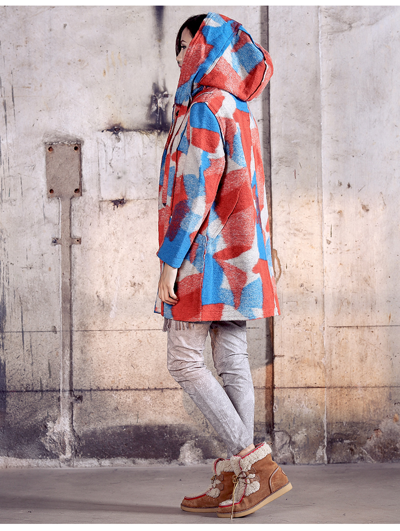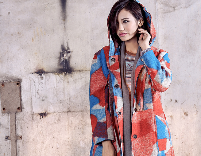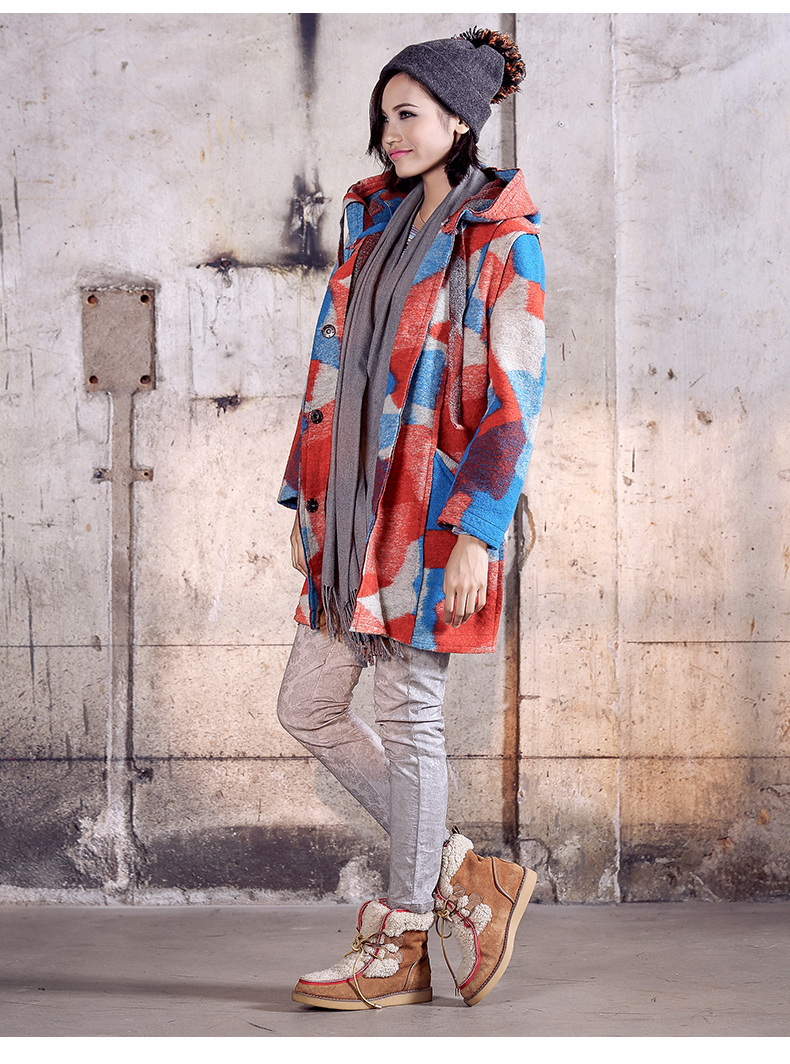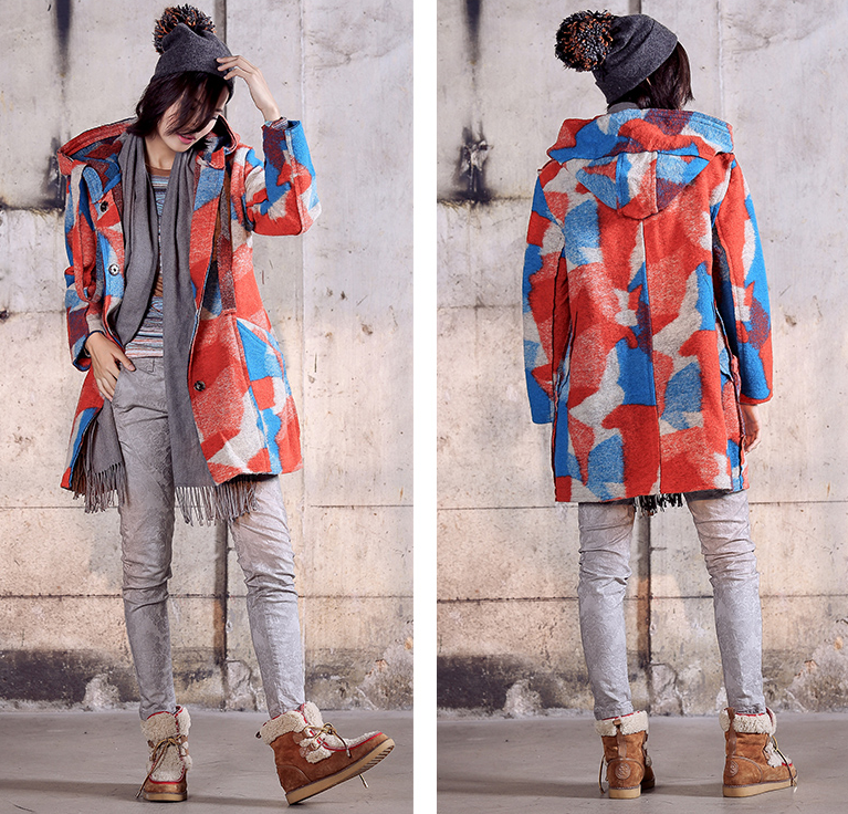 KOREAN FASHION ORANGE TURQUOISE CAMOUFLAGE CASUAL WINTER COAT