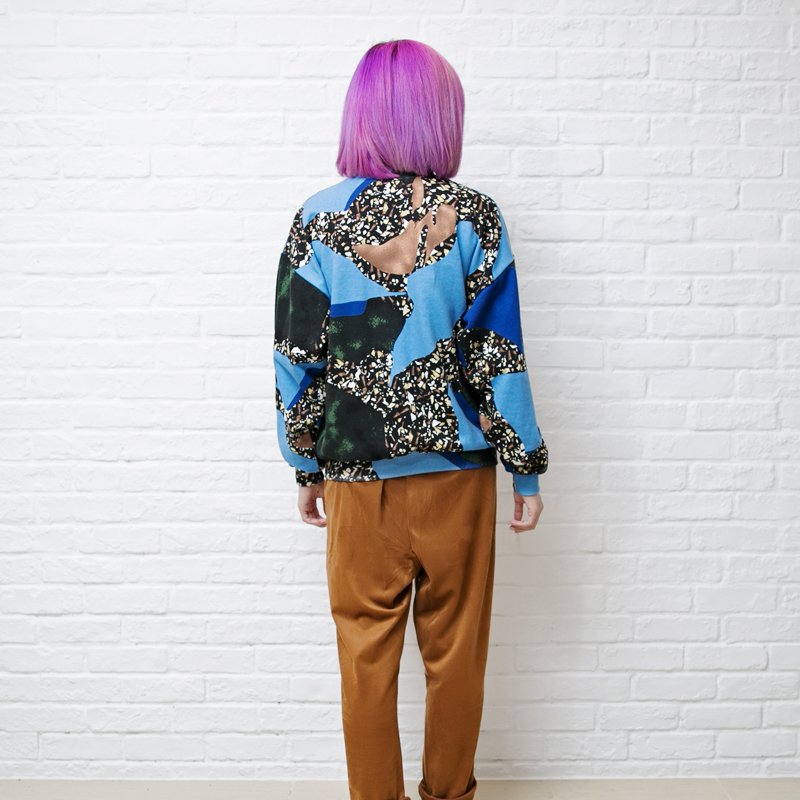 KOREAN FASHION BLUE GRAY ABSTRACT PATTERN SWEATSHIRT