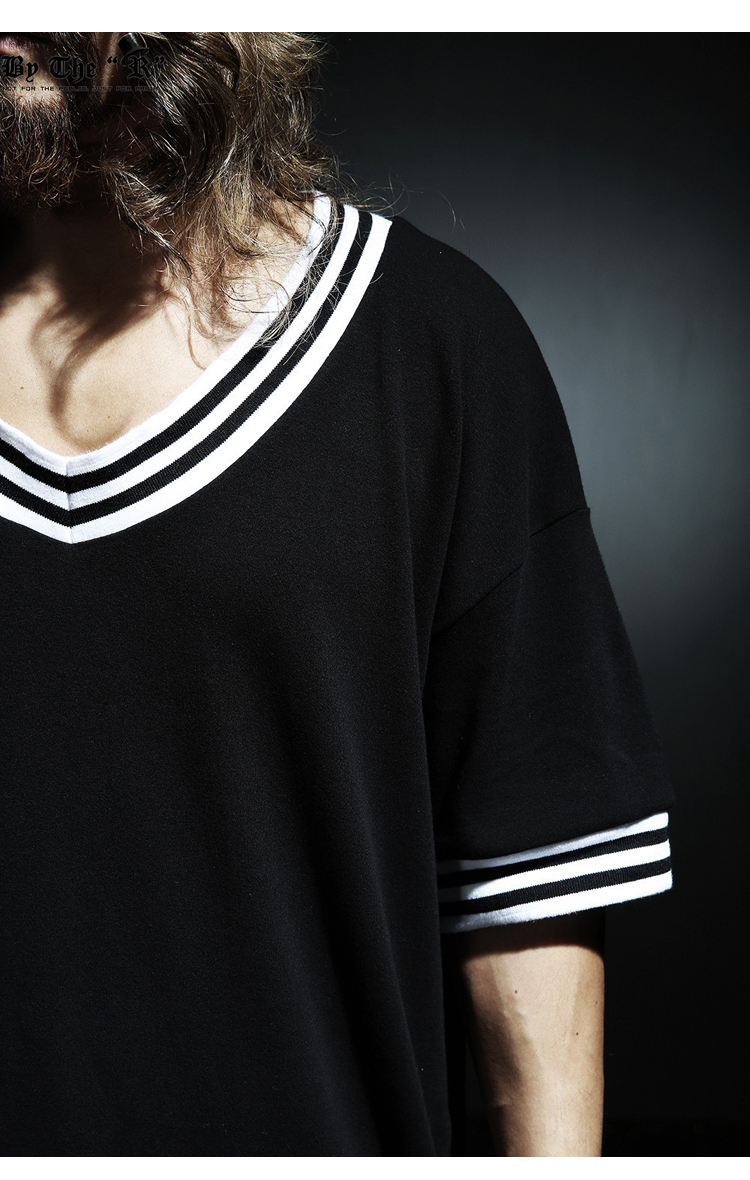 JAPANESE HARAJUKU DARK BLACK PUNK ROCK THREAD STITCHED LONG T SHIRTS