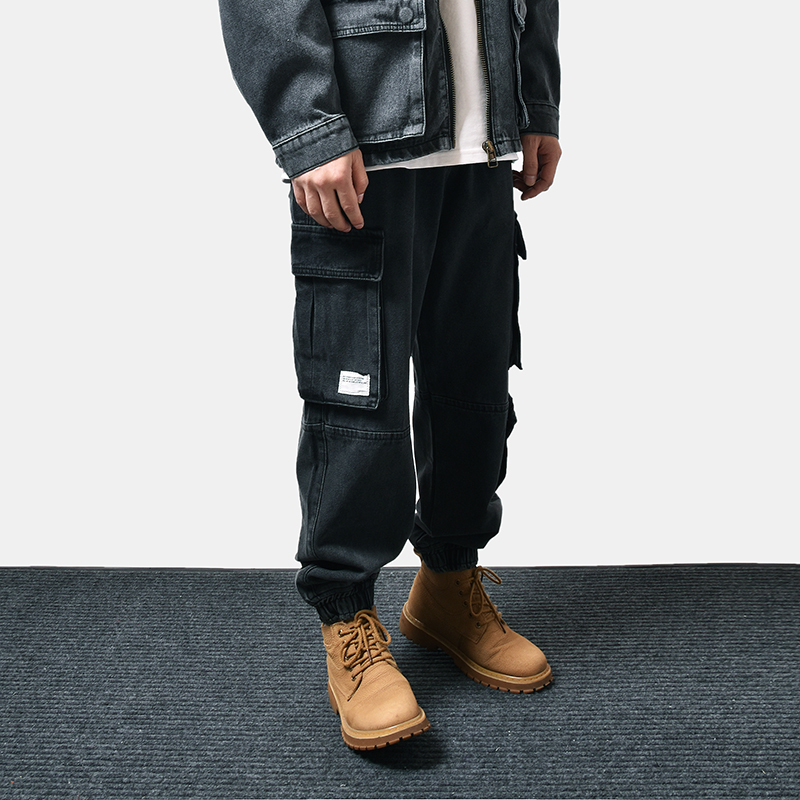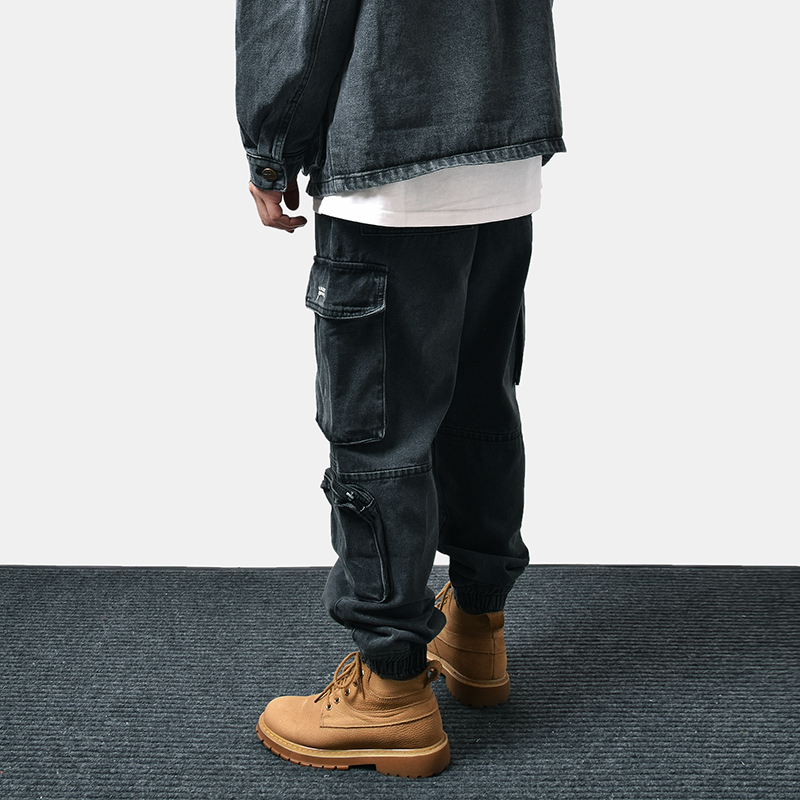HEXALITE OPAL ELASTIC WAIST RETRO STYLE DENIM JEAN JOGGER PANTS