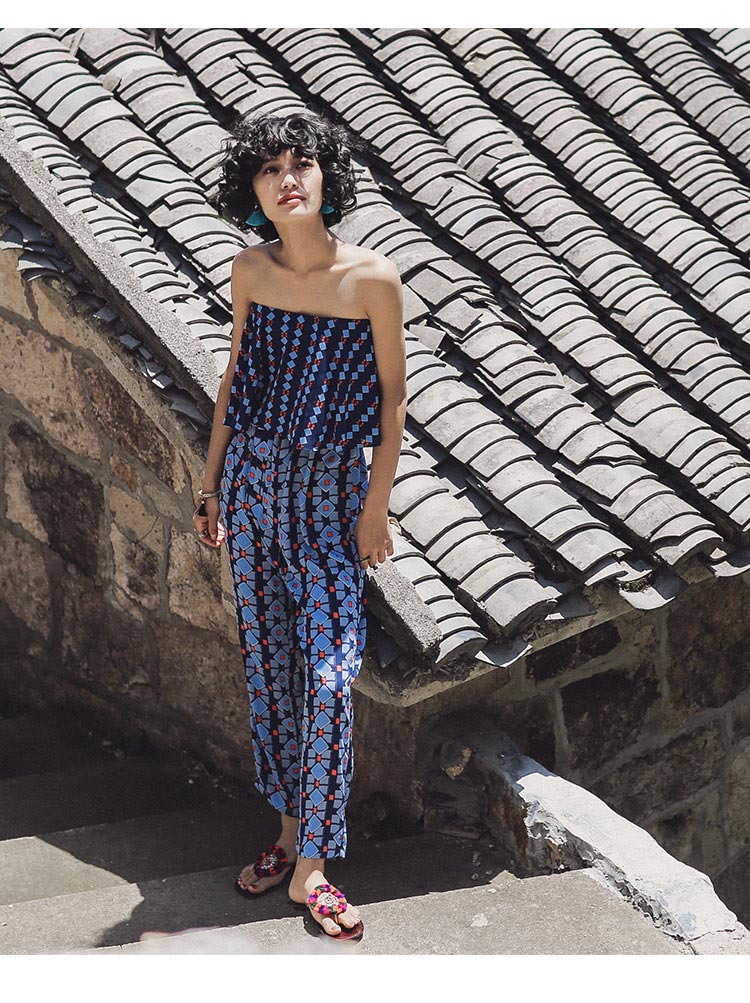 Paisley pattern Bandeau style High-rise waist Minimal effort, maximum impact Lightweight woven fabric