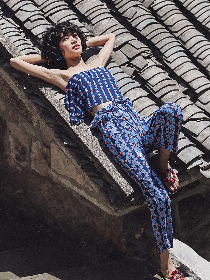 SINCE THEN BANDEAU BEACH CROP TOP AND PAPERBAG WAIST TROUSERS IN PAISLEY PRINT