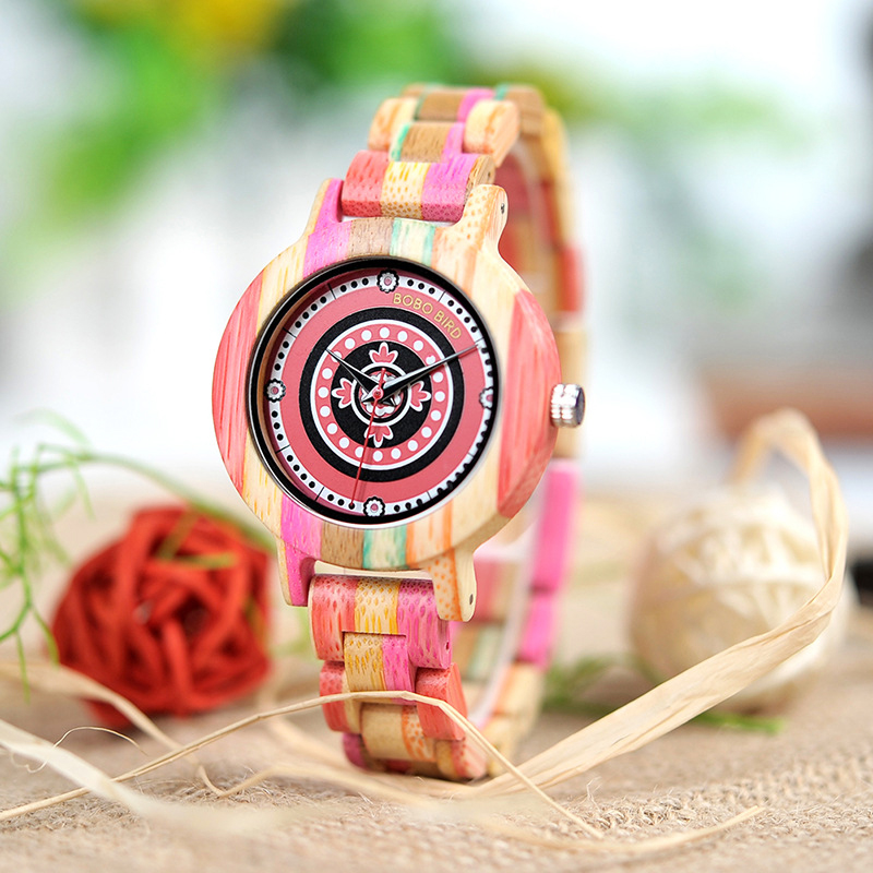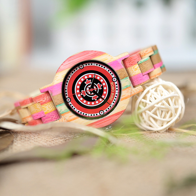 BOBO BIRD HANDMADE BAMBOO WOODEN WATCH IN RAINBOW COLOR