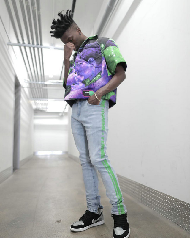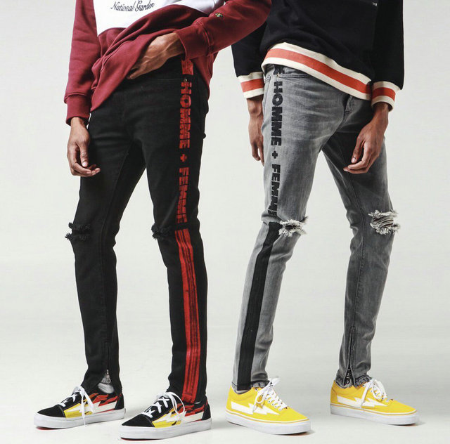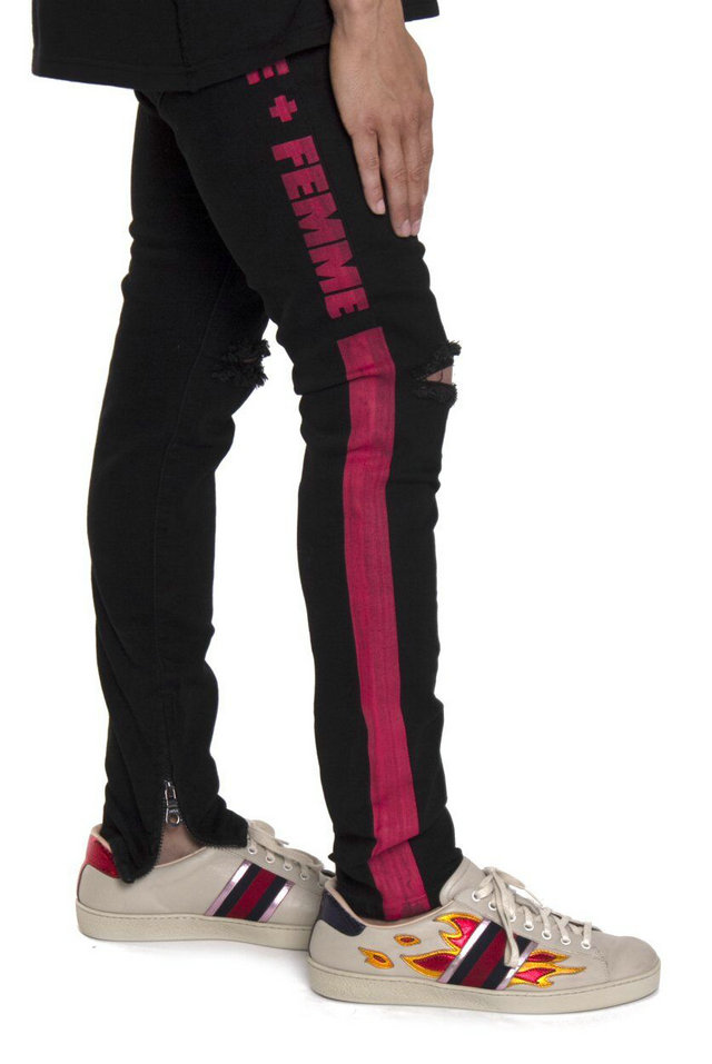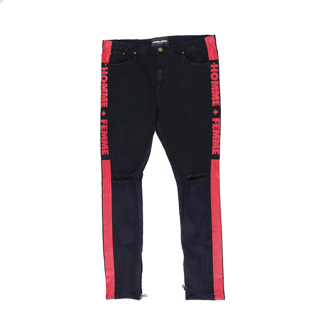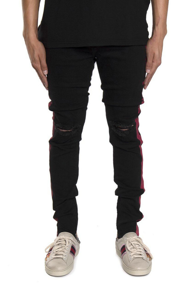 STAPLEX DENIM WEAR STRIPED LOGO DENIM RIPPED JEAN PANTS