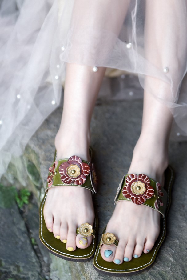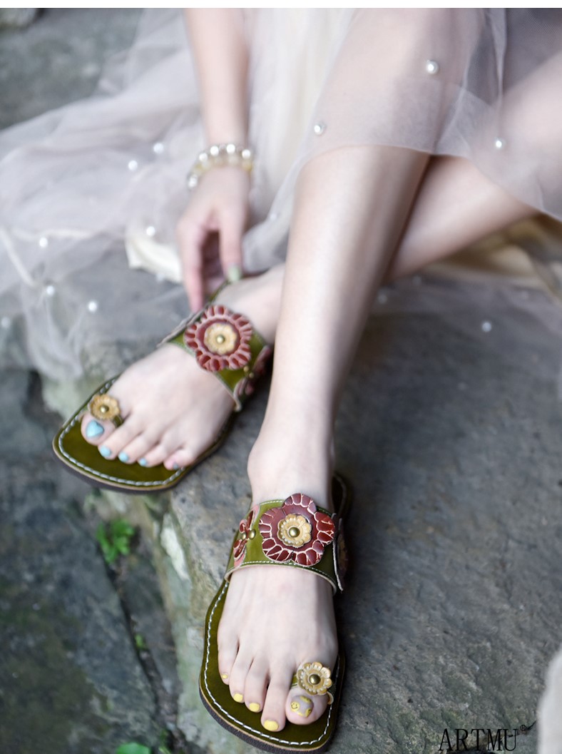 ARTMU WIDE FIT BEADED EMBELLISHED FLAT SANDALS
