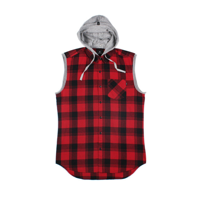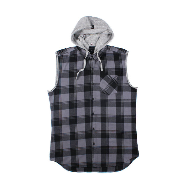 GOLIATH JUCA GRID BROOKLYN SLEEVELESS PLAID SHIRT WITH HOODIE