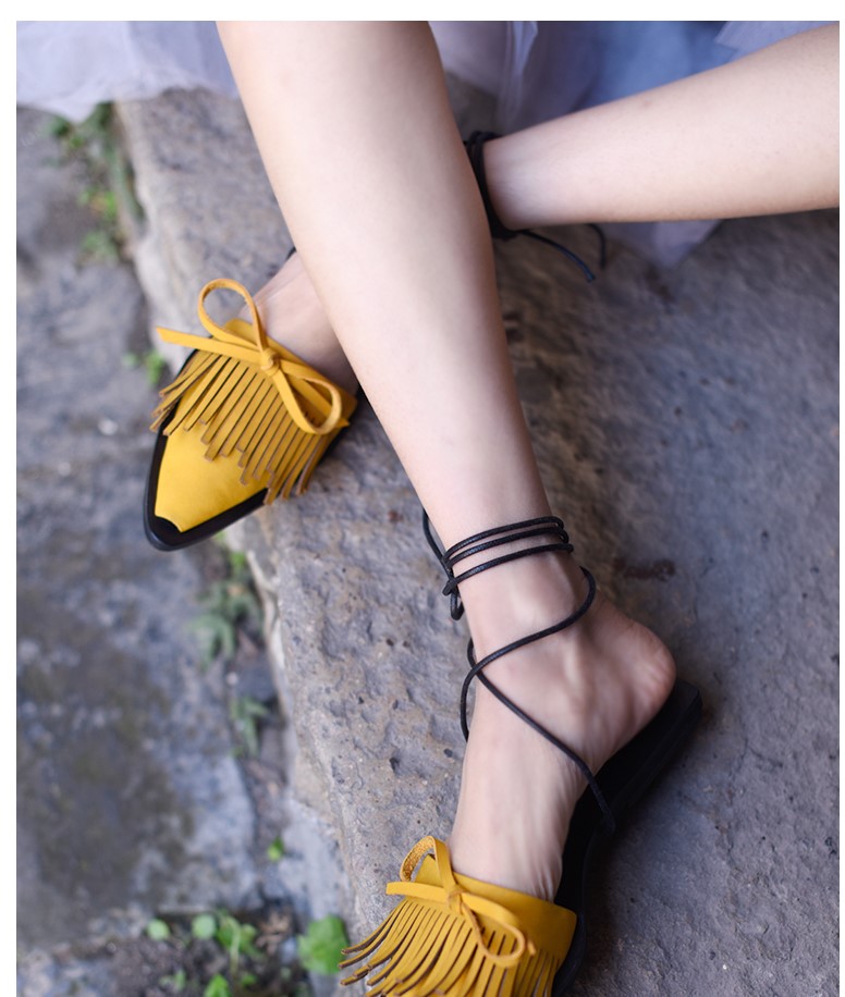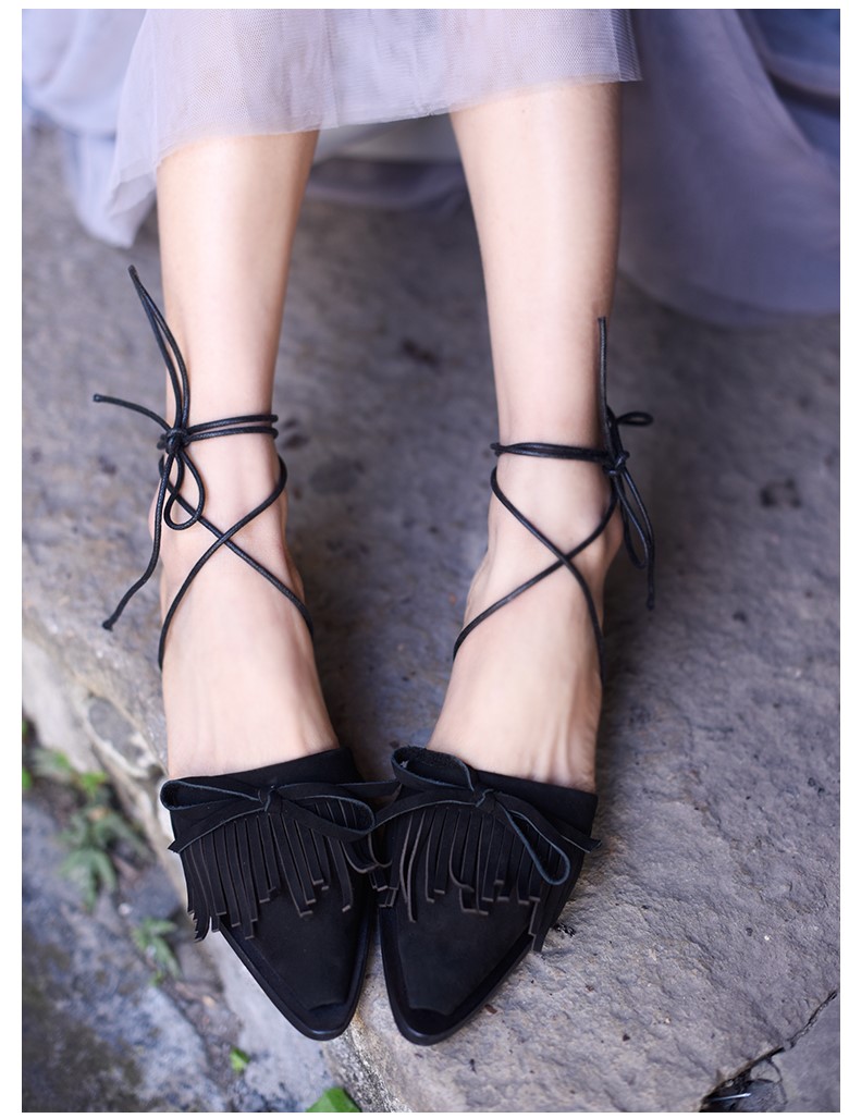 Bow and tassel design Lace-up fastening Real leather Pointed toe