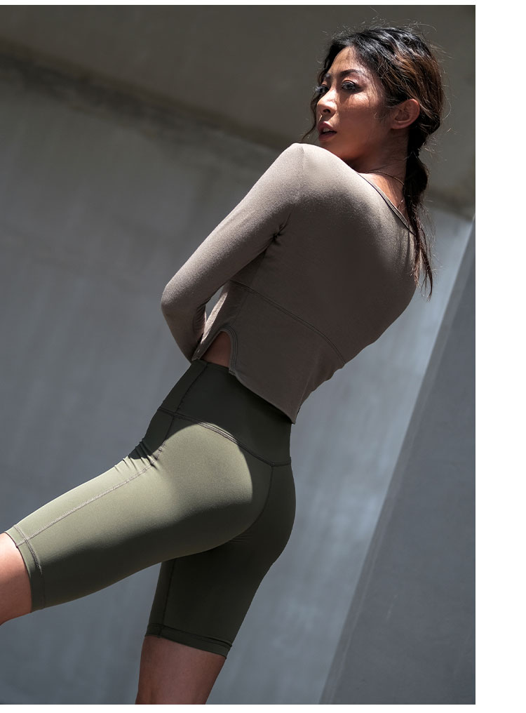 High rise waist Cropped cut Bodycon fit A tight cut to the body Elasticated waist
