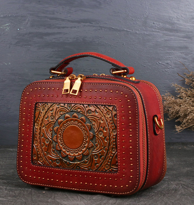 ZAPA WOMENS ETHNIC STYLE HANDMADE LEATHER TOTEM HANDBAG