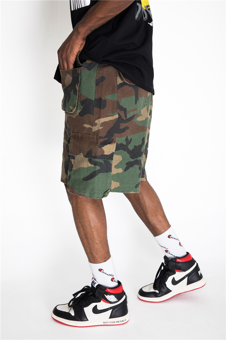 CHOE SLING WAIST CAMOUFLAGE MULTI POCKET CASUAL SHORT PANTS IN GREEN