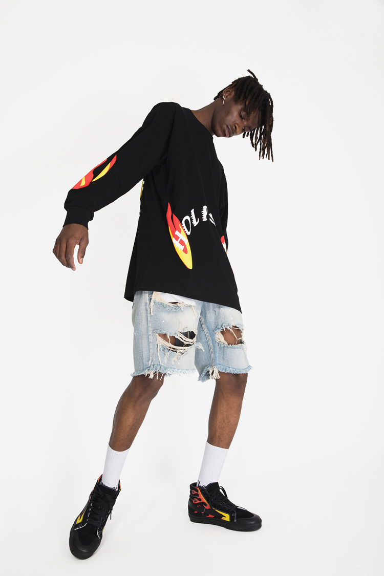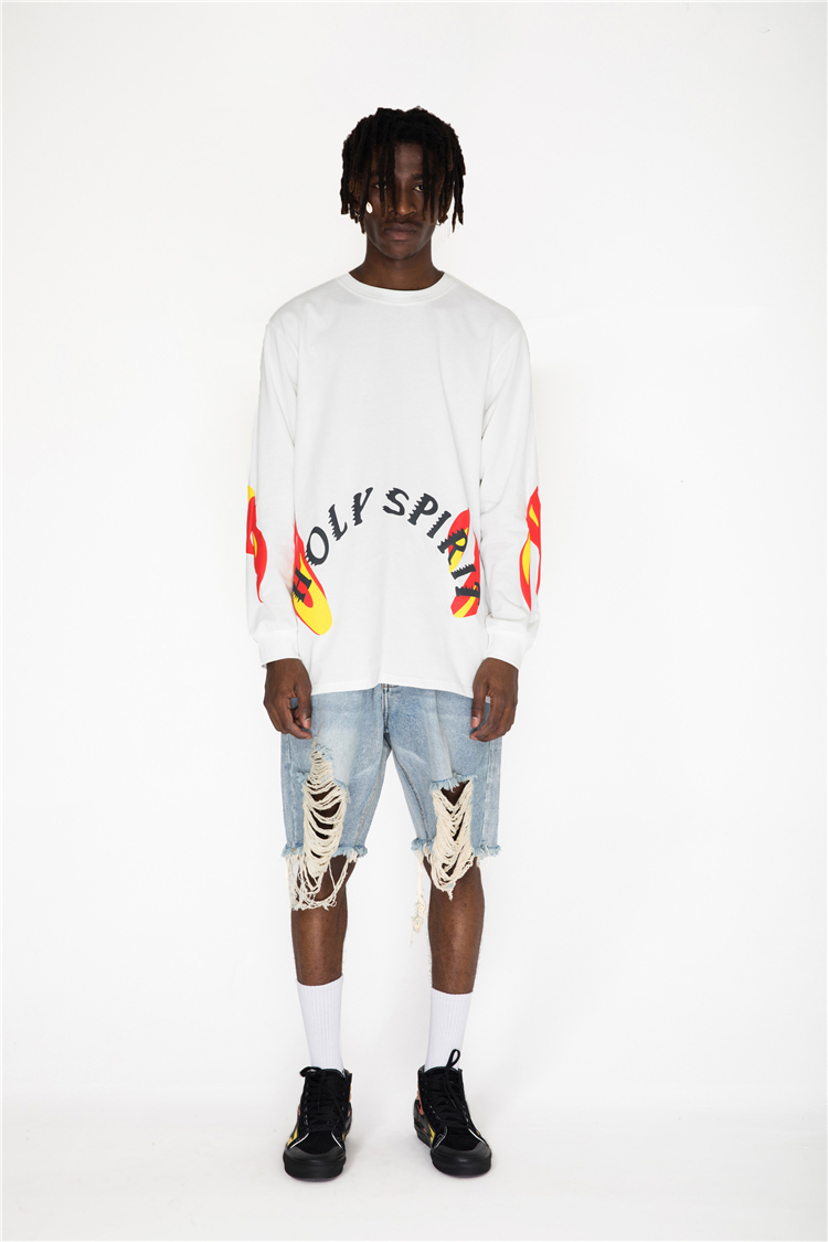 CHOE HOLY SPIRIT STEREO FLAME LETTER PRINT LONG SLEEVED TEE SHIRTS