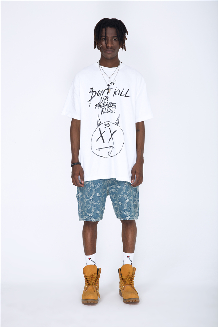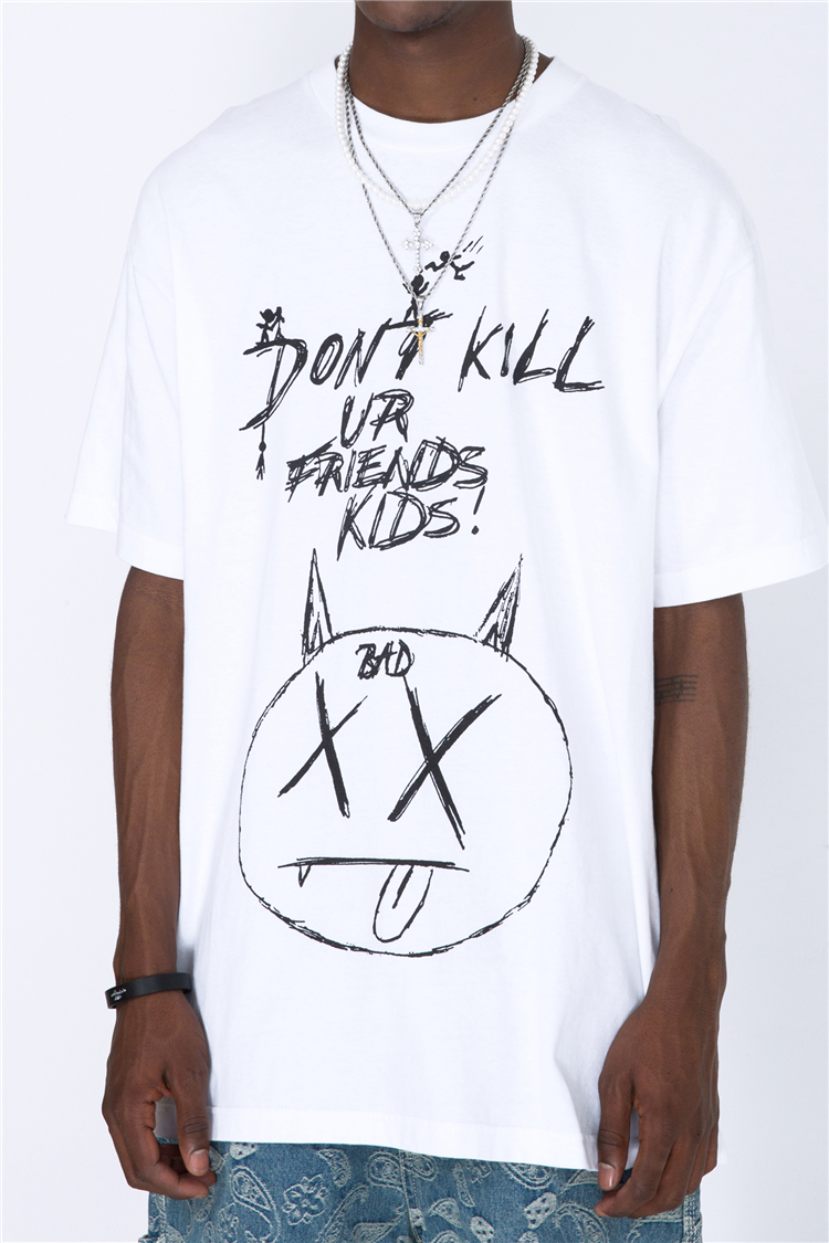 LITTLE DEVIL GRAFFITI LETTER HIPSTER COTTON CREW NECK TEE SHIRTS