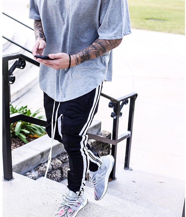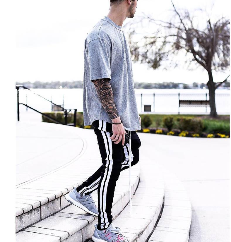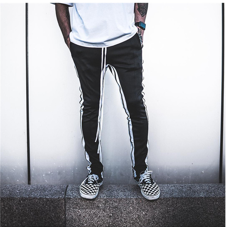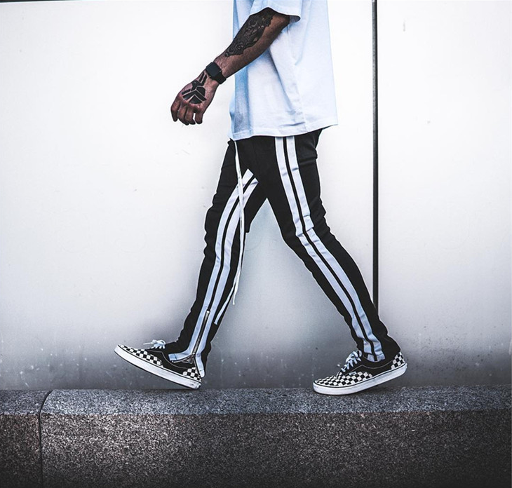 HYPESTER URBAN INSPIRED SLING WAIST TRACK PANTS WITH STRIPED IN BLACK