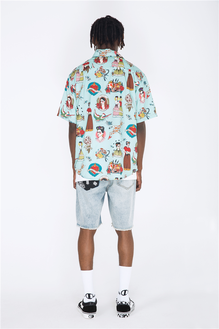 VANG OLD SCHOOL TATTOO VINTAGE MINT GREEN HAWAIIAN SHIRT