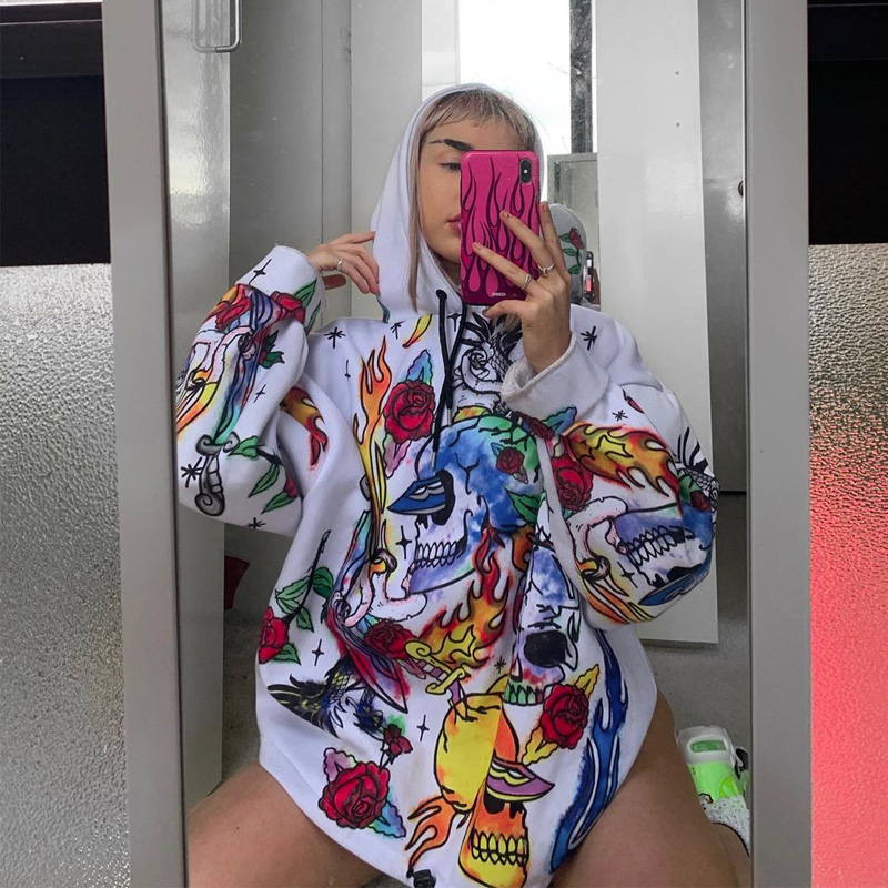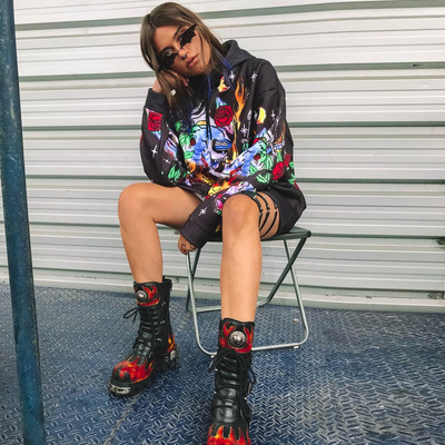 SHEMODA ZURA FLAME GRAFFITI HANDICRAFT HOODIE SWEATSHIRT