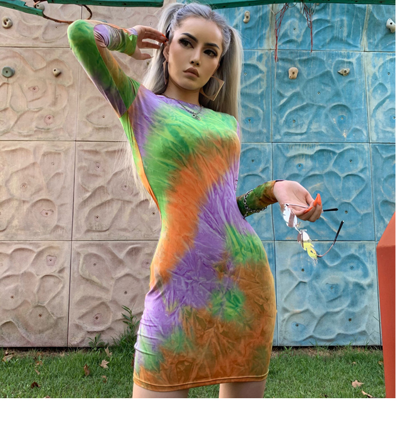 SHEMODA INSPO LONG SLEEVED TIE DYED SLIM NIGHT DRESS IN MULTI COLOR