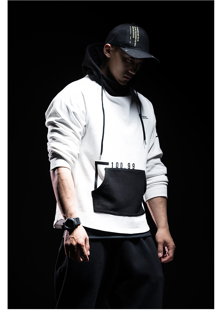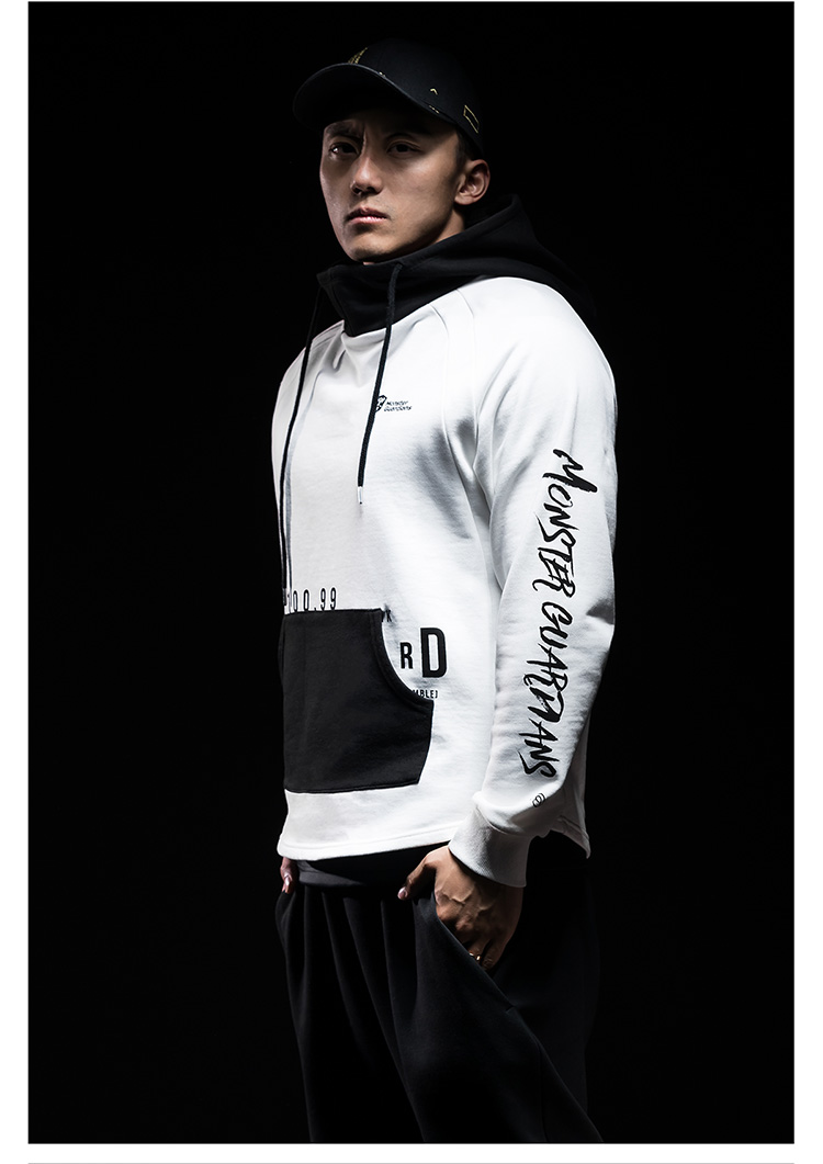 MONSTER GUARDIANS BLACK AND WHITE COLOR BLOCK HOODIE