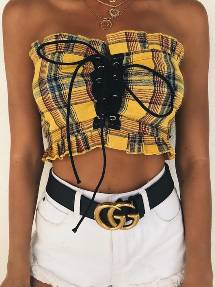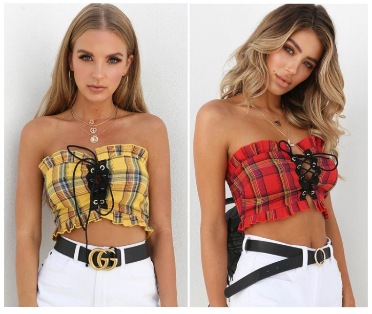 POSA ZEYZA SHEMODA CHEST EYELET BANDAGE SEXY CROP TOP