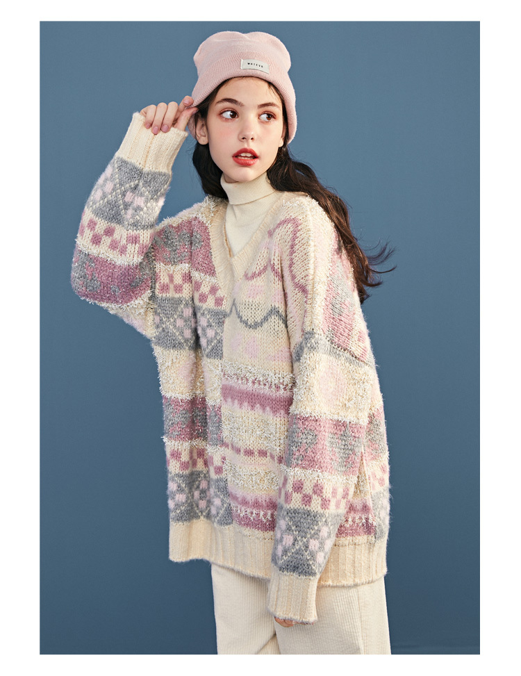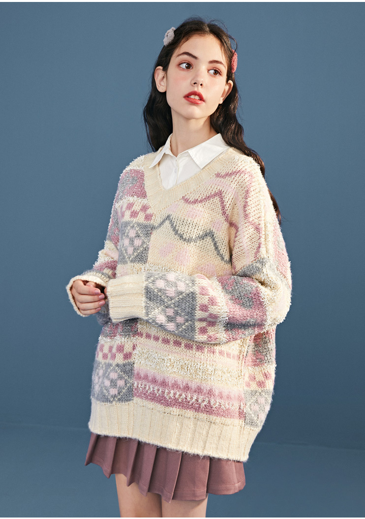 LEDDIN VINTAGE INSPIRED OVERSIZED V NECK JUMPER