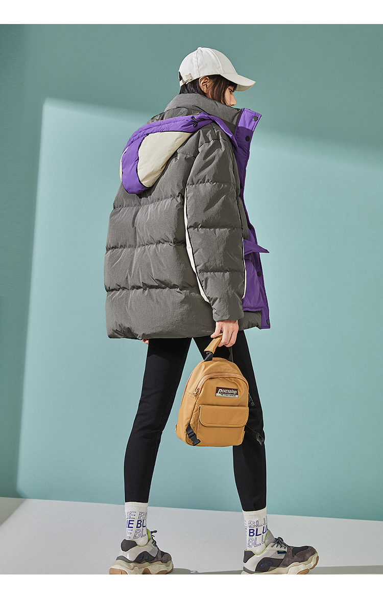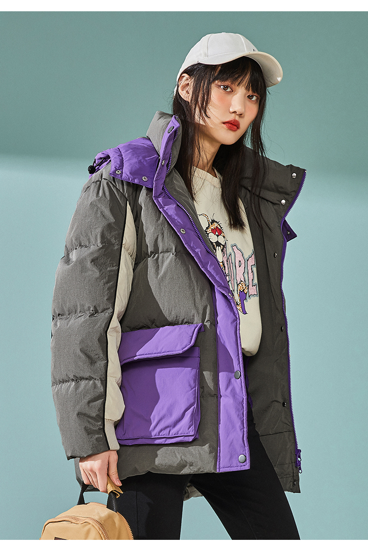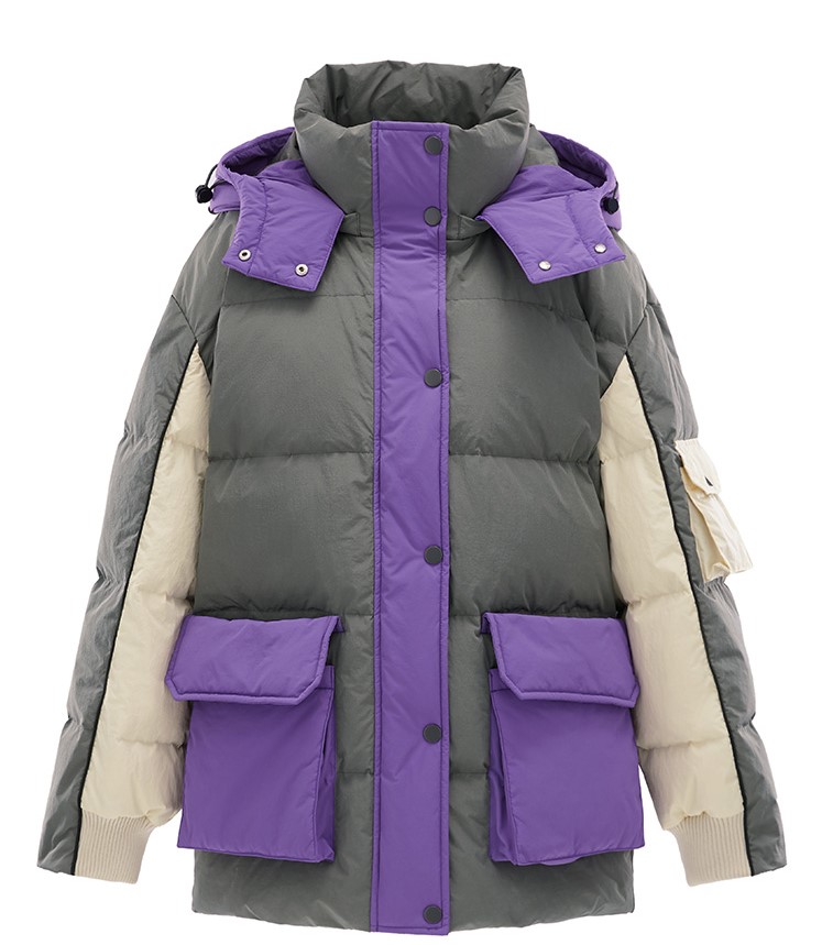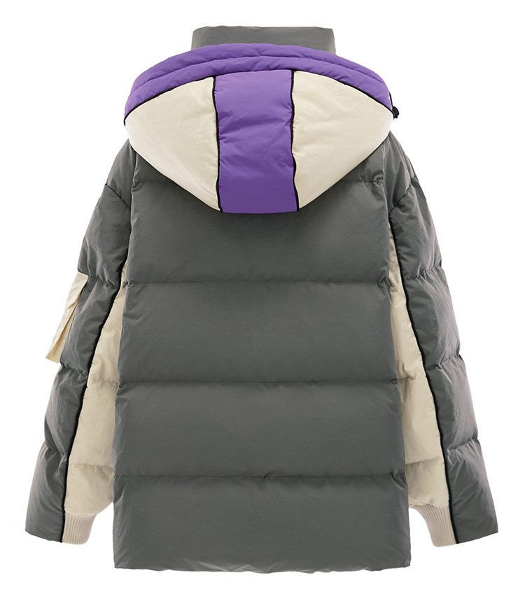 PEACE BIRD COLOR BLOCK PADDED COAT WITH GREY AND PURPLE