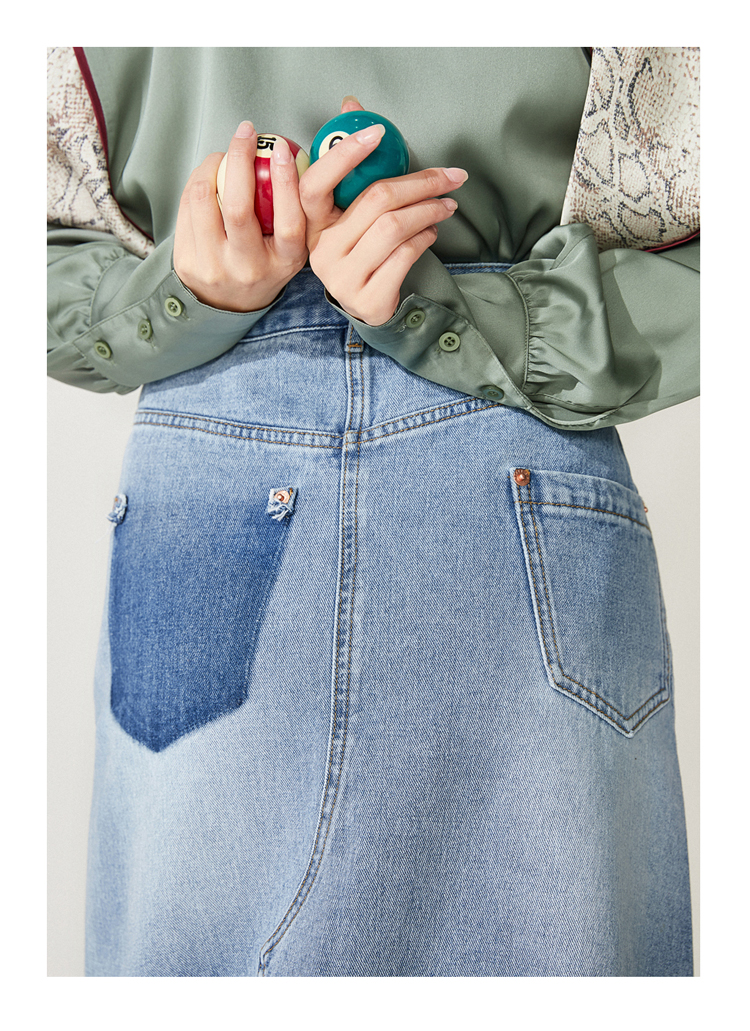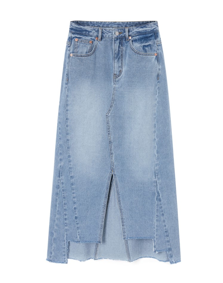 PEACE BIRD DENIM MAXI SKIRT WITH FRONT SPLIT DESIGN