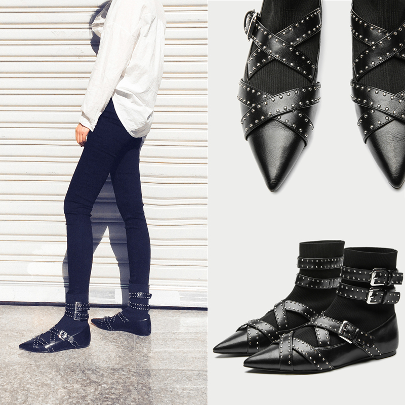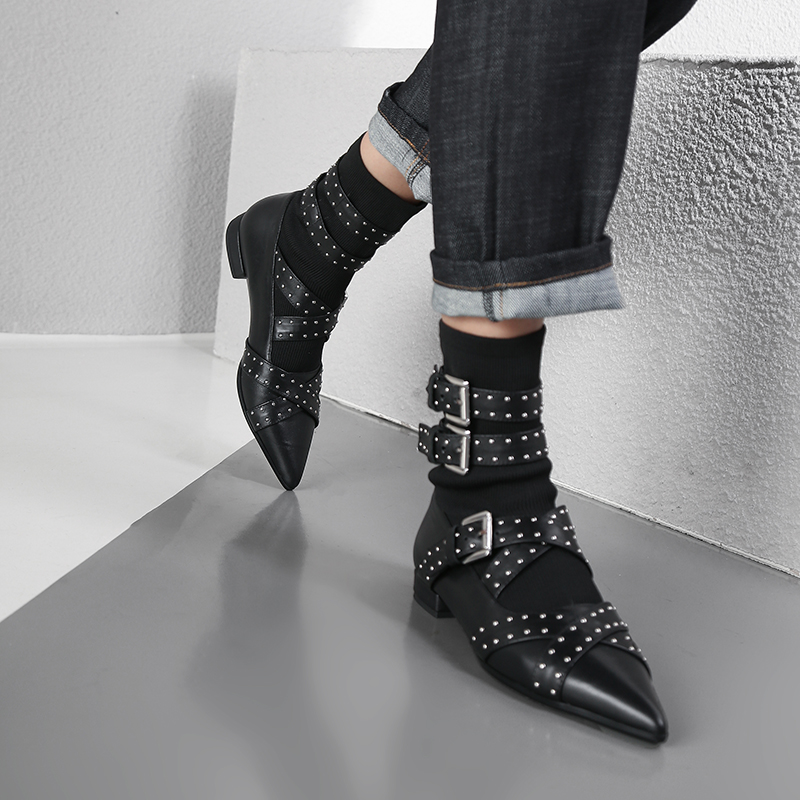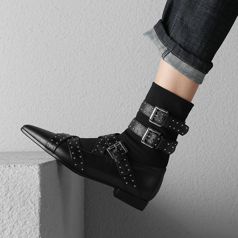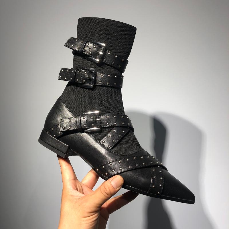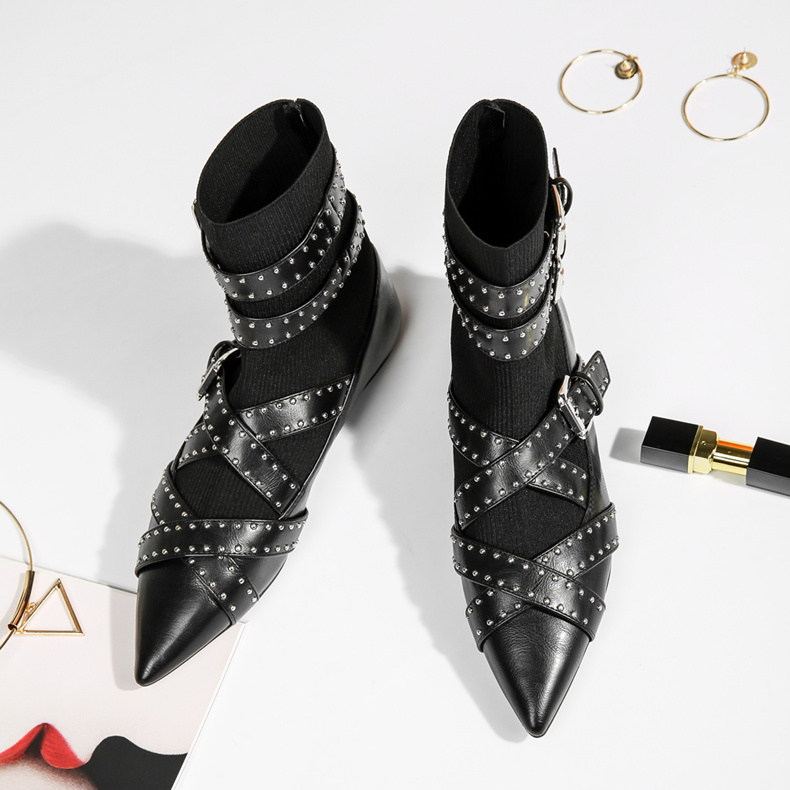 ZESOZA DIDANO FLAT BOTTOM POINTED SOCK BOOTS WITH RIVET