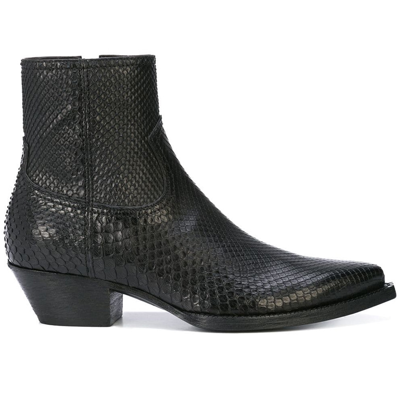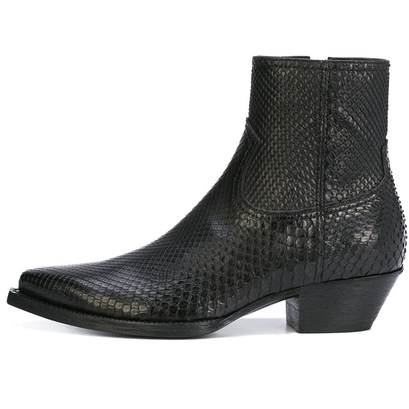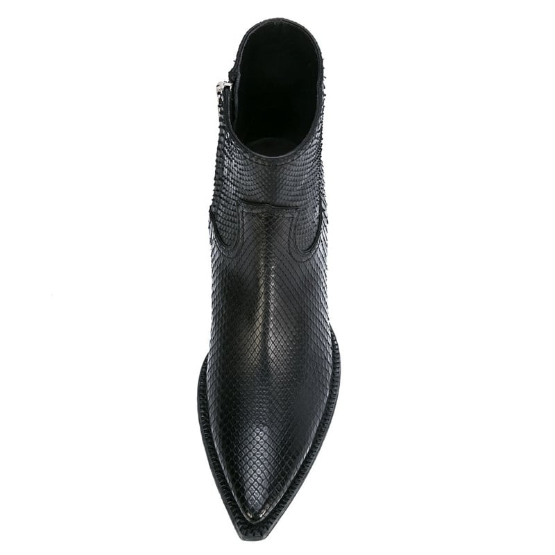 Slip-on style Side zip fastening Western details Pointed toe Real leather