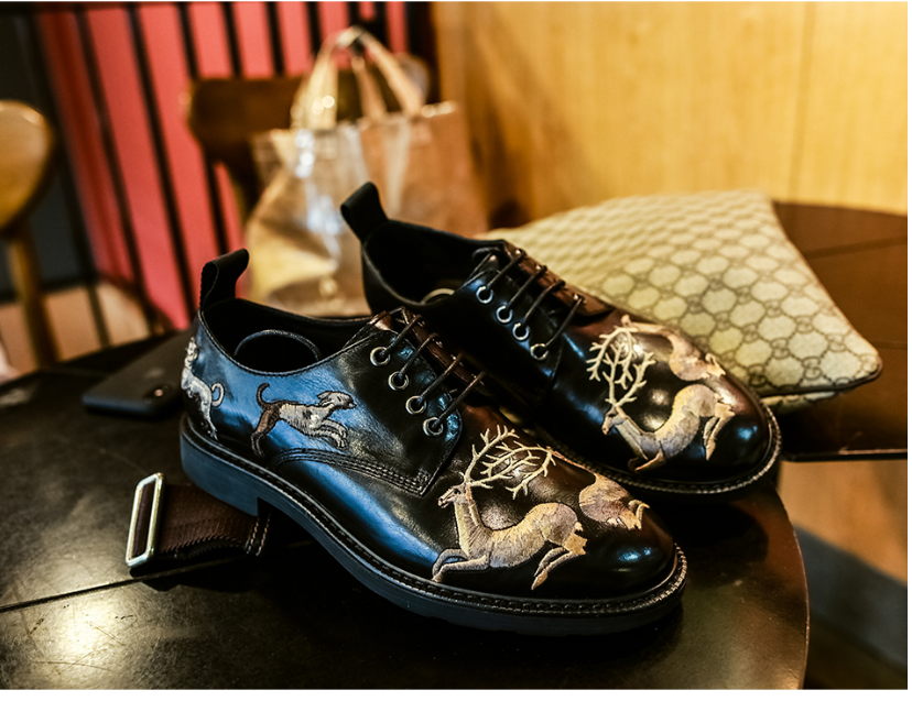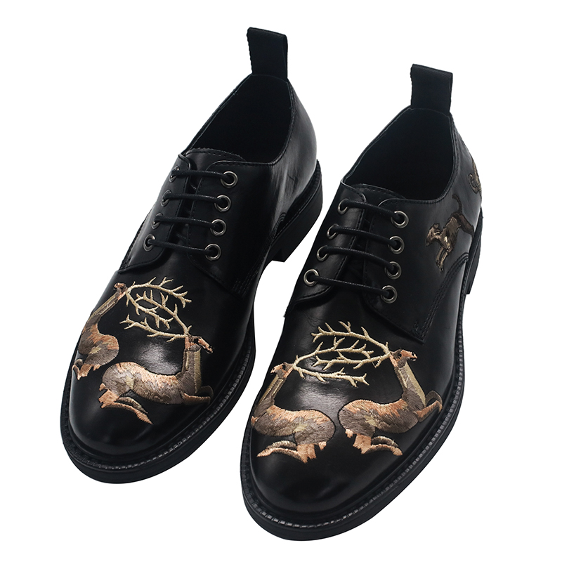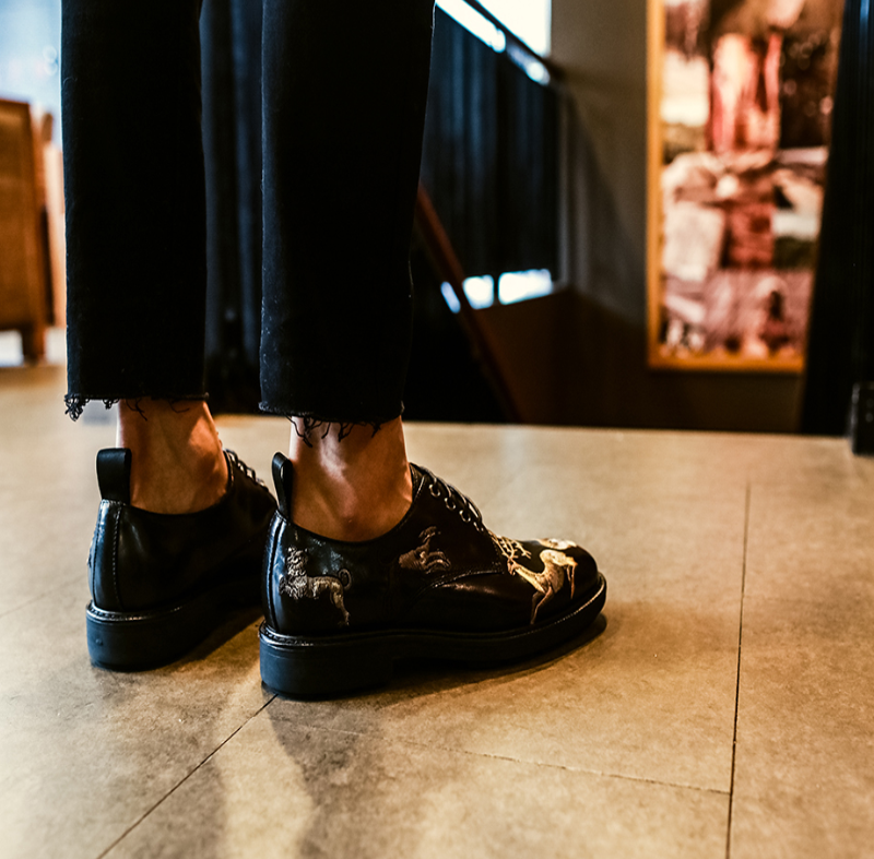 NADMIL DESIGN EMBROIDERED LACE UP SHOES IN BLACK