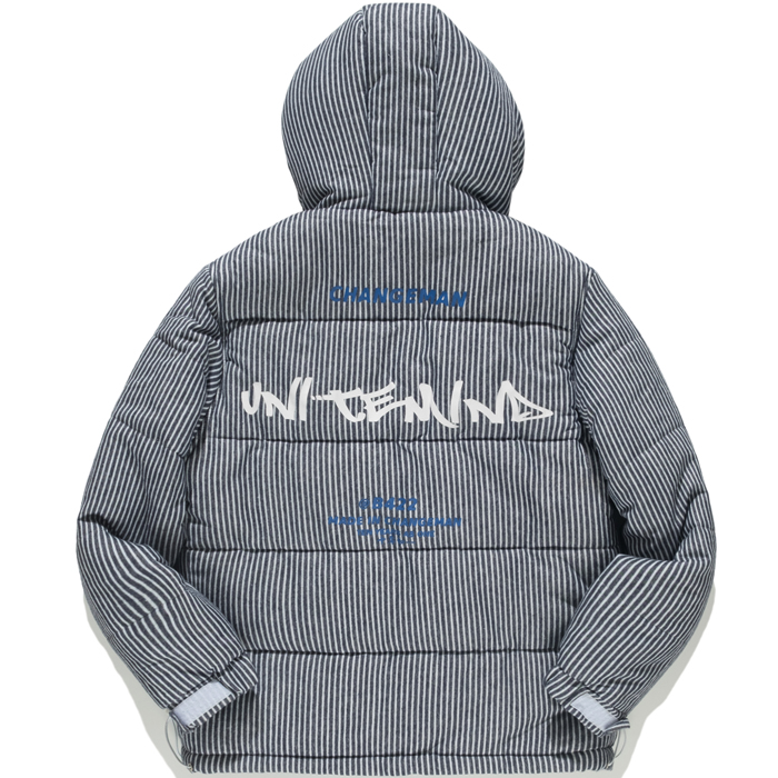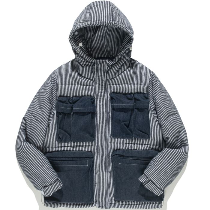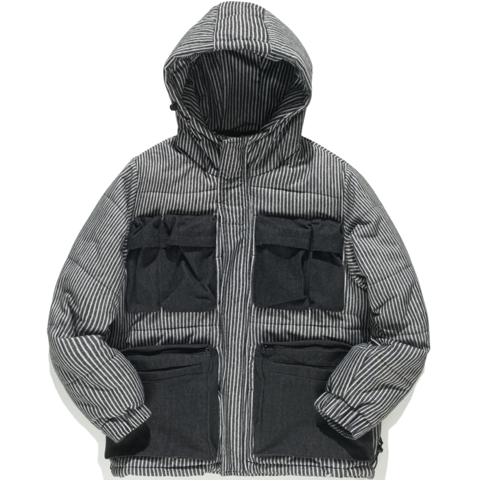 ZEELISA HUPO VERTICAL STRIPE FUNCTIONAL POCKET COTTON JACKET WITH HOODIE