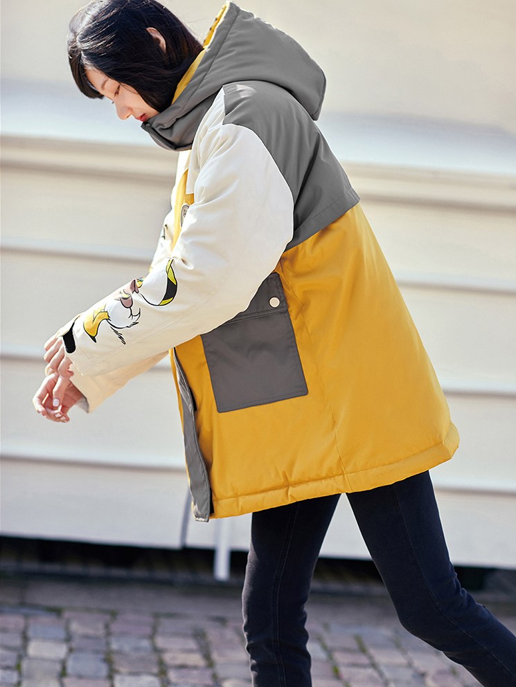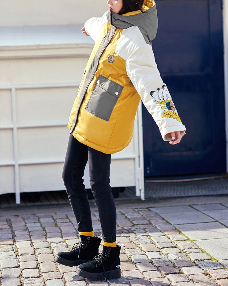 For those cold days Fixed hood Donald duck print Zip fastening Contrast pockets Relaxed fit