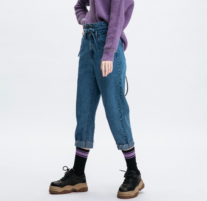 PEACE BIRD PAPERBAG WAIST HIGH RISE JEANS