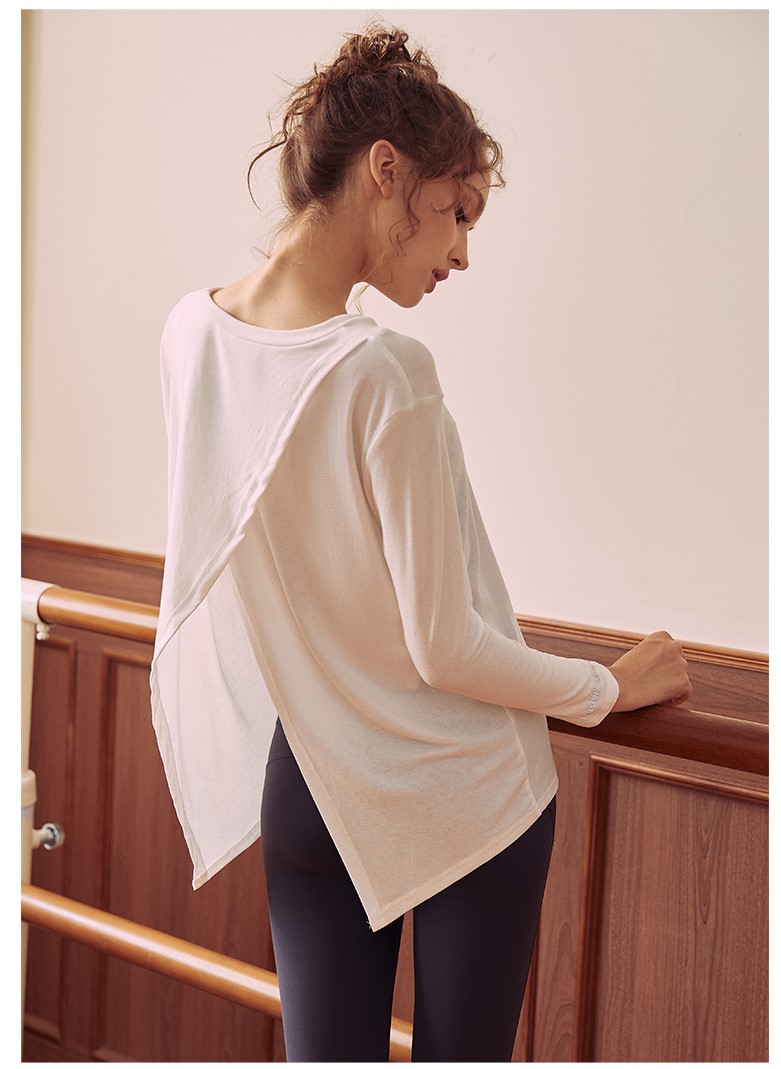 SANRU DESIGN LONG SLEEVE TOP T SHIRT WITH DRAPEY SPLIT BACK