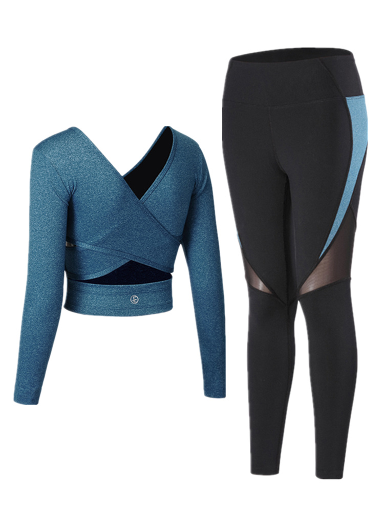 Mix and match Colorblock design Crop top Open back design High rise leggings Bodycon fit